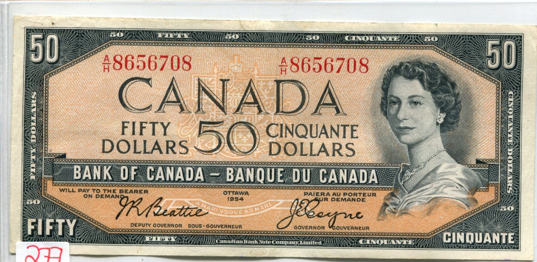 Canada 1954 $50.00 Beatie-coyne V.F. cond.