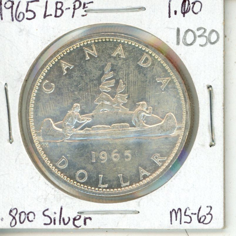 Canada 1965 Large Beads, Pointed 5 MS-63 Dollar .800 Silver.