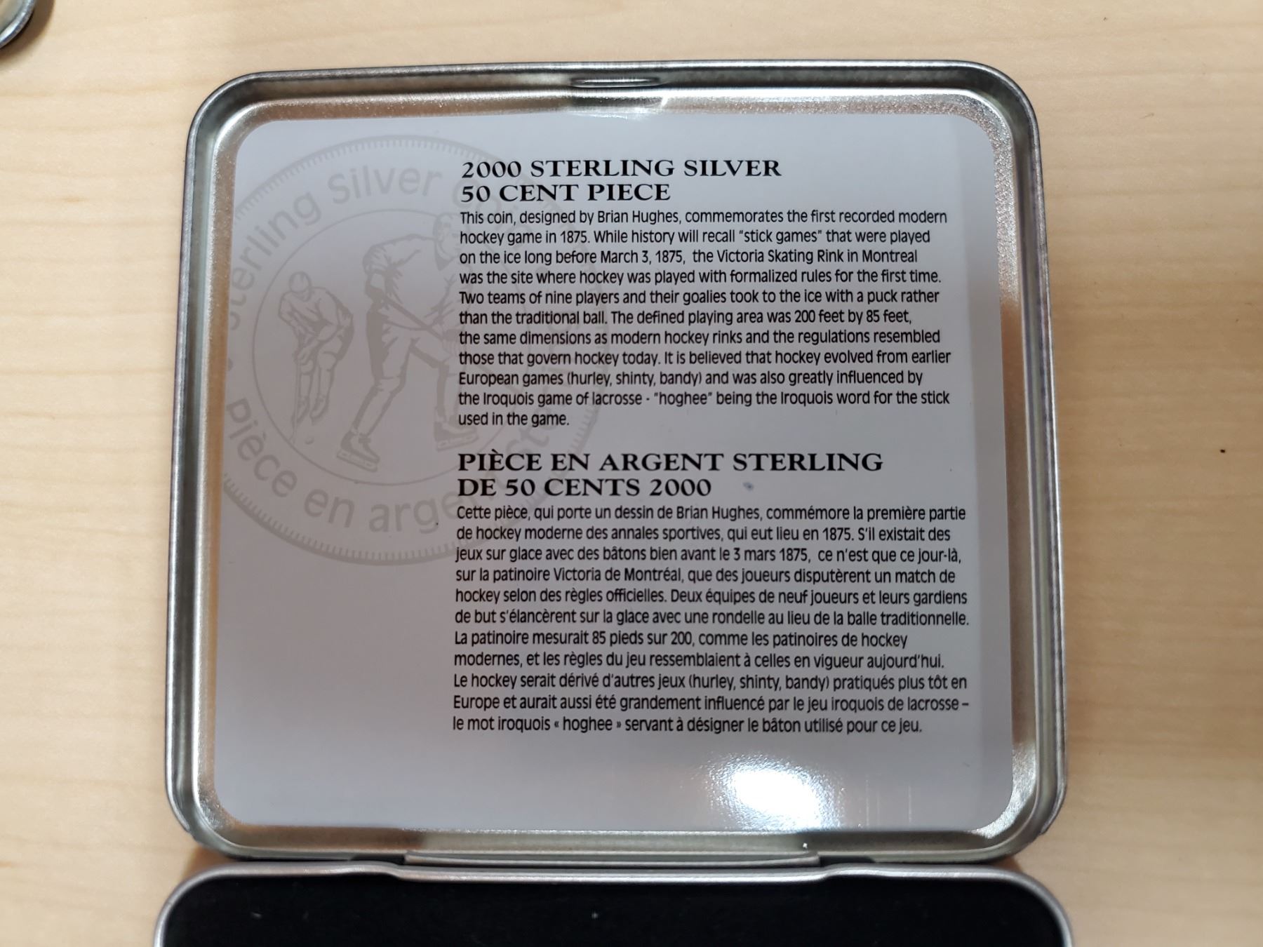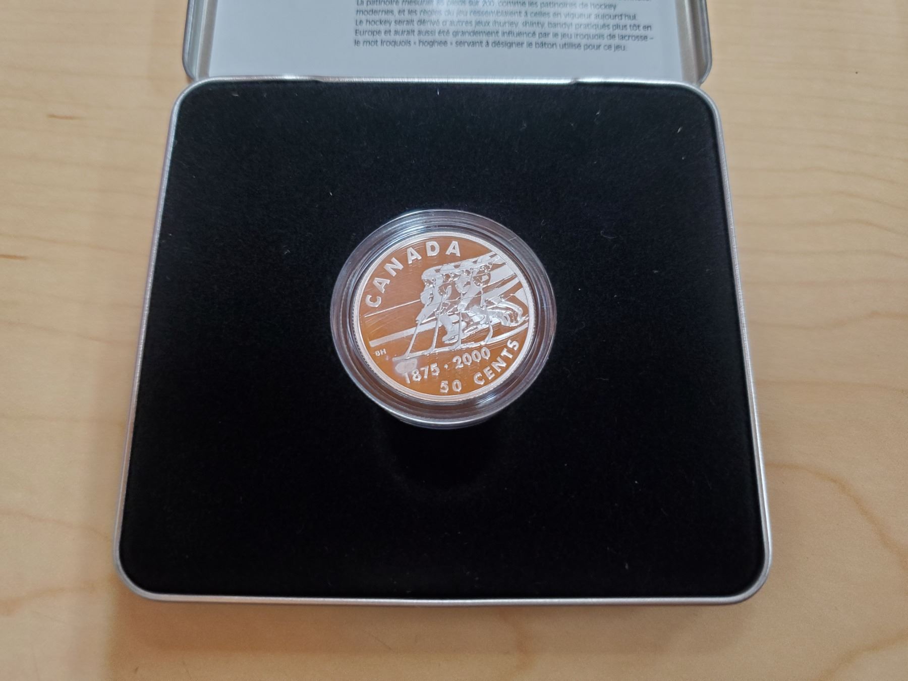 Canada 2000 50¢ sterling silver coin in metal case, Hockey, COA