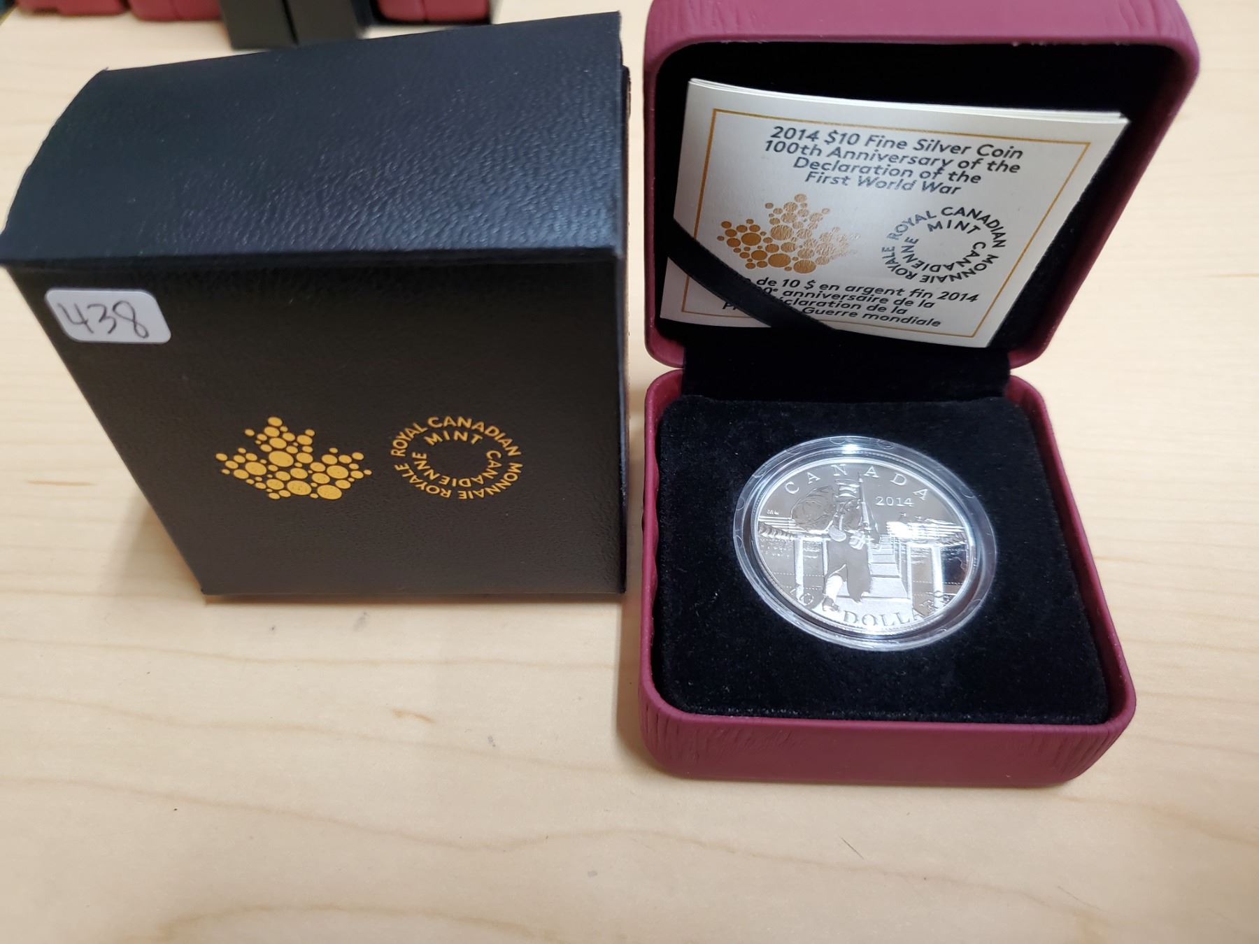 Canada 2014 $10 fine silver coin, 100th Ann. of Declaration WWI, COA