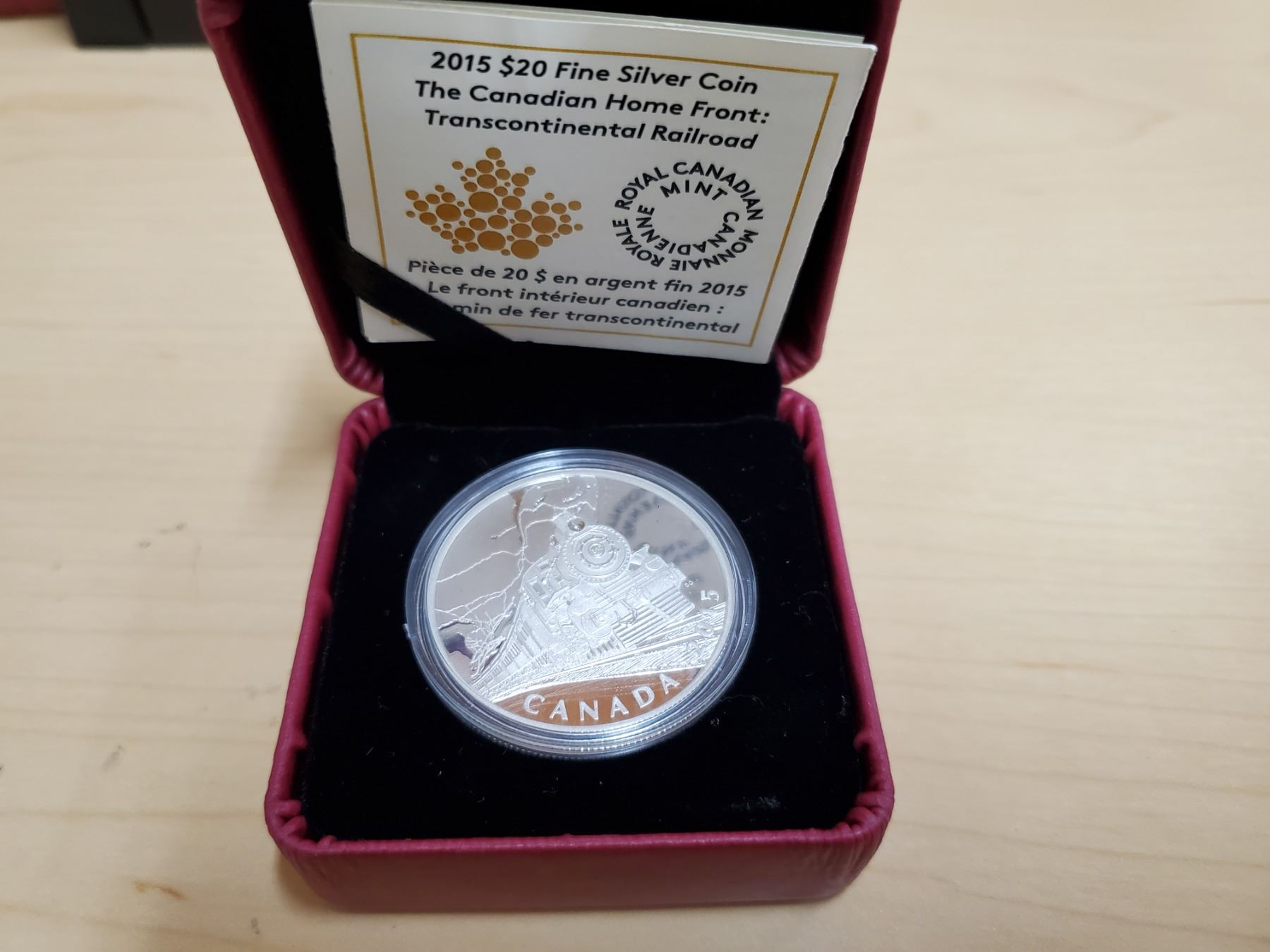 Canada 2015 $20 fine silver coin, Transcontinental Railroad, COA