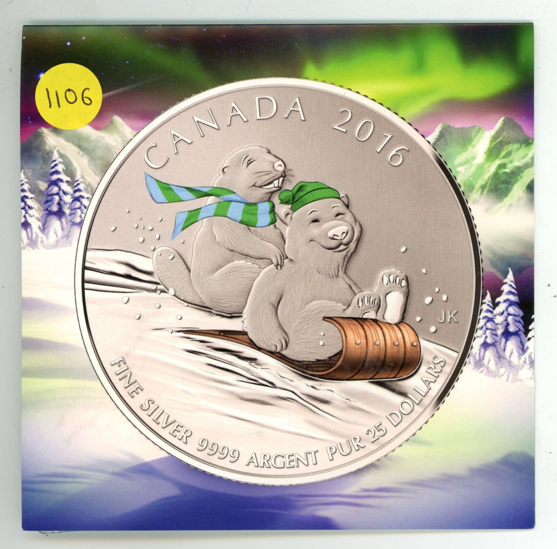 Canada 2016 Fine Silver 9999 Argent Pur 25 Dollars Coins.