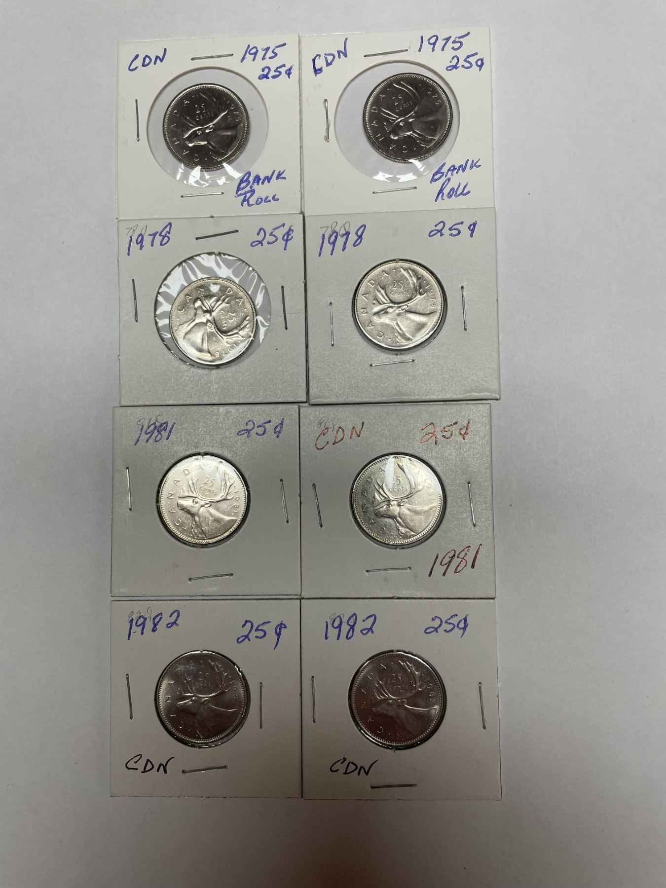 Canada 25 Cents Quarter 8 Coins, two each 1975, 1978, 1981, 1982