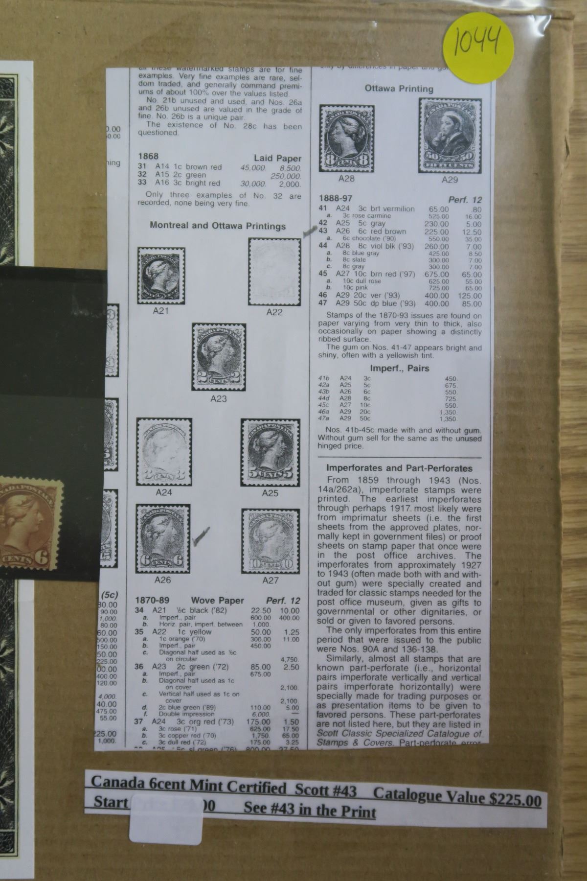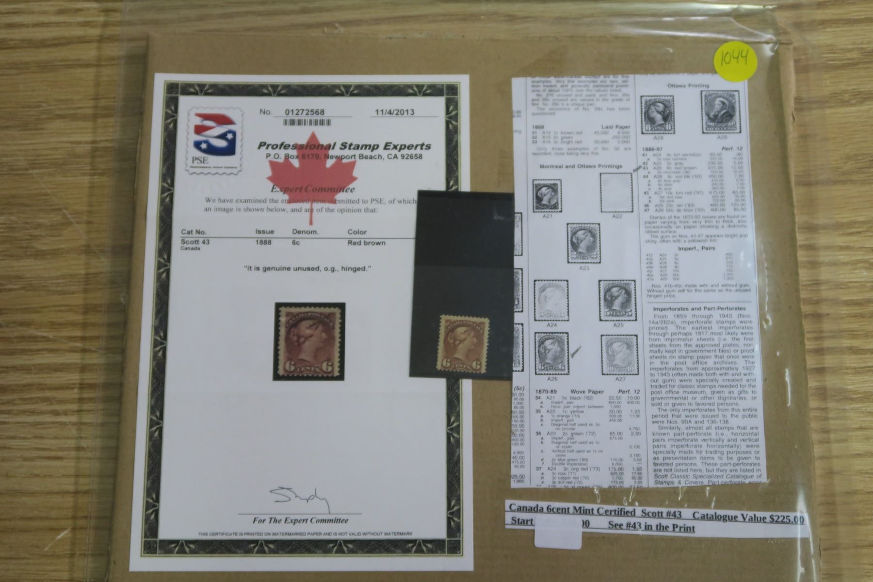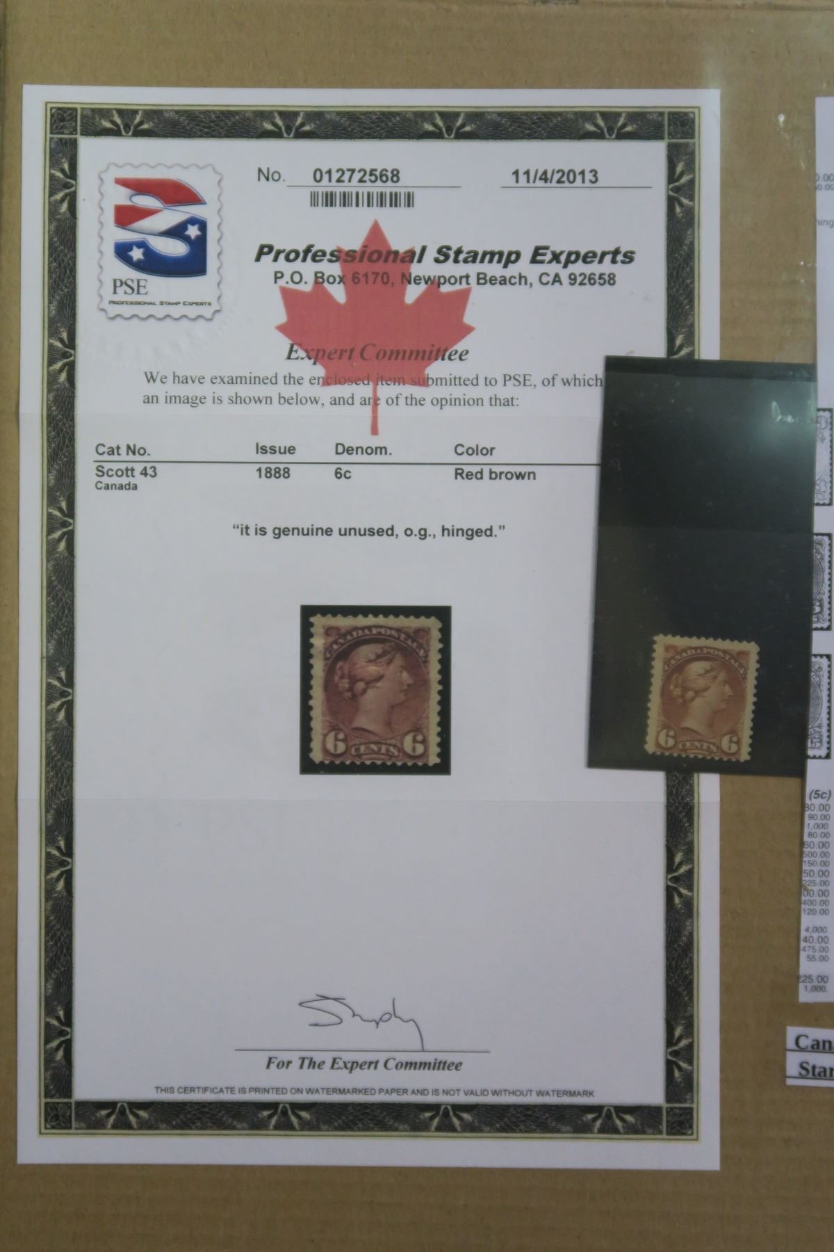 Canada 6 Cent Stamp - Mint Certified Scott #43