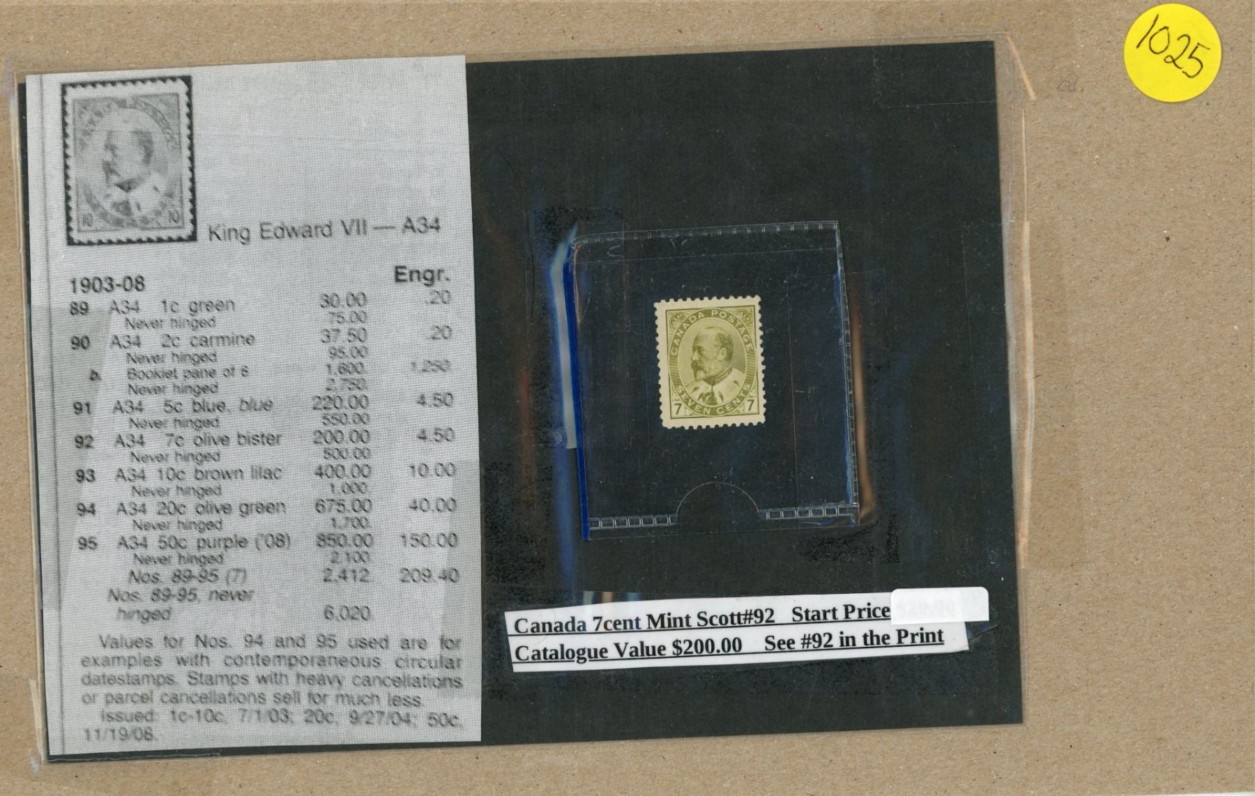 Canada 7 Cent Stamp - King Edward VII Mint Scott #92