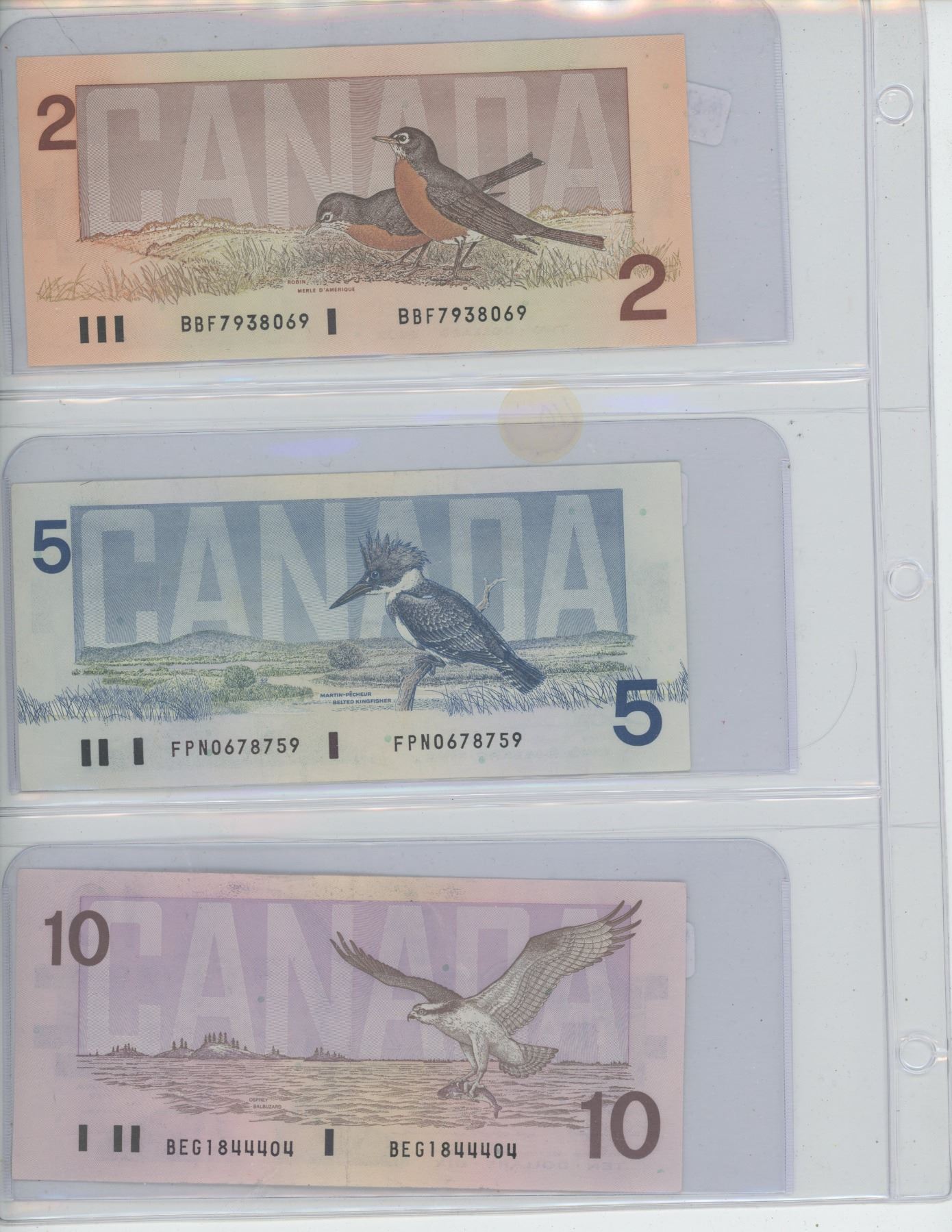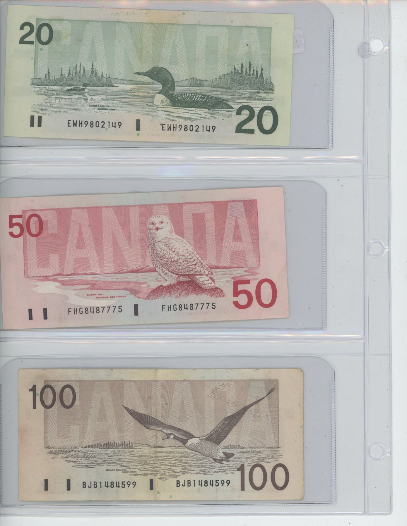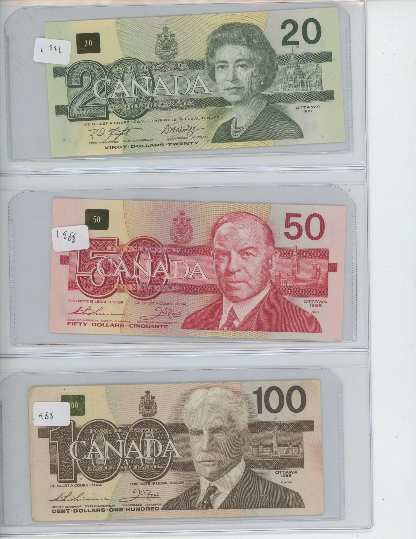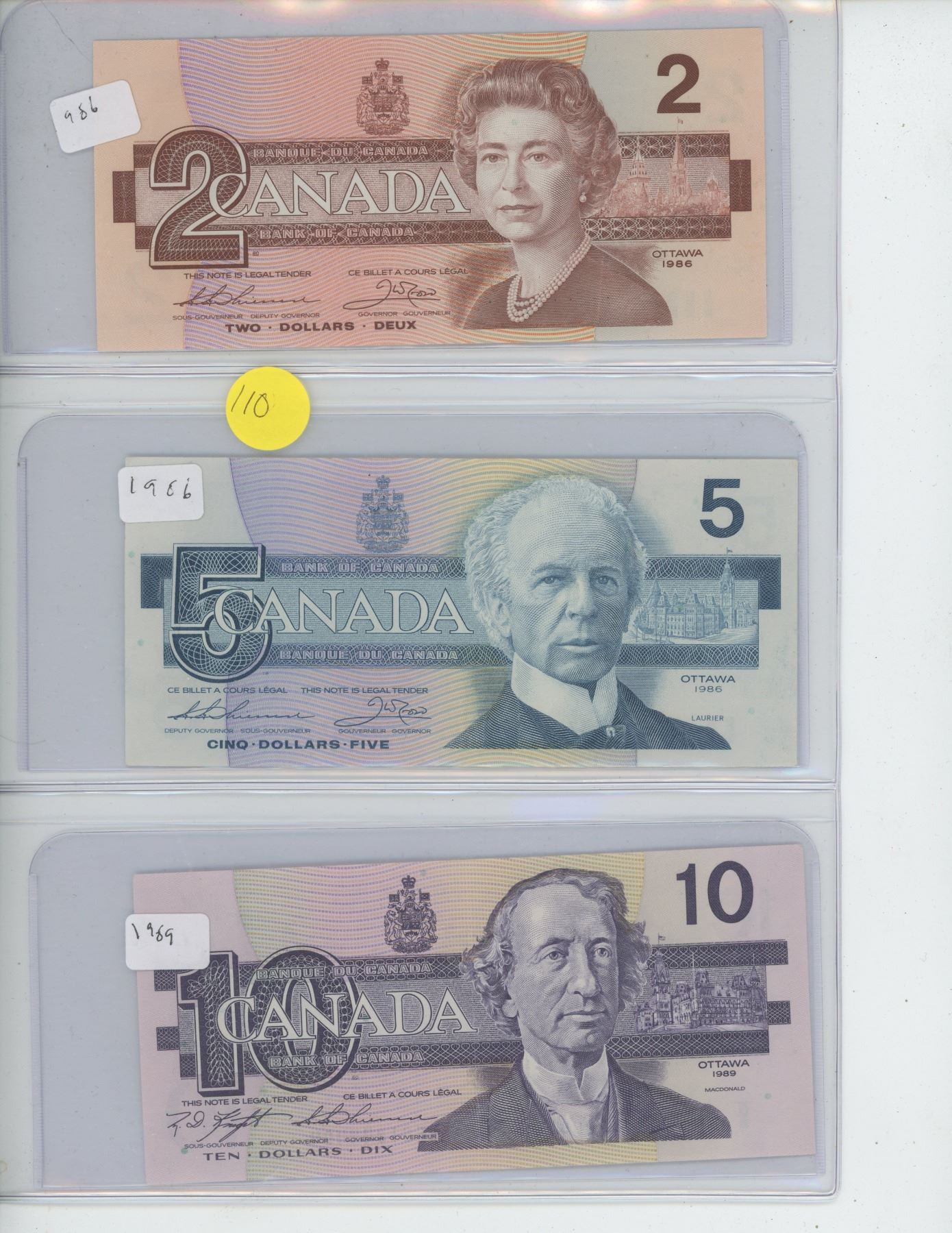 Canada Bank Notes - $2 1986, $5 1986, $10 1989, $20 1991, $50 1988, $100 1988