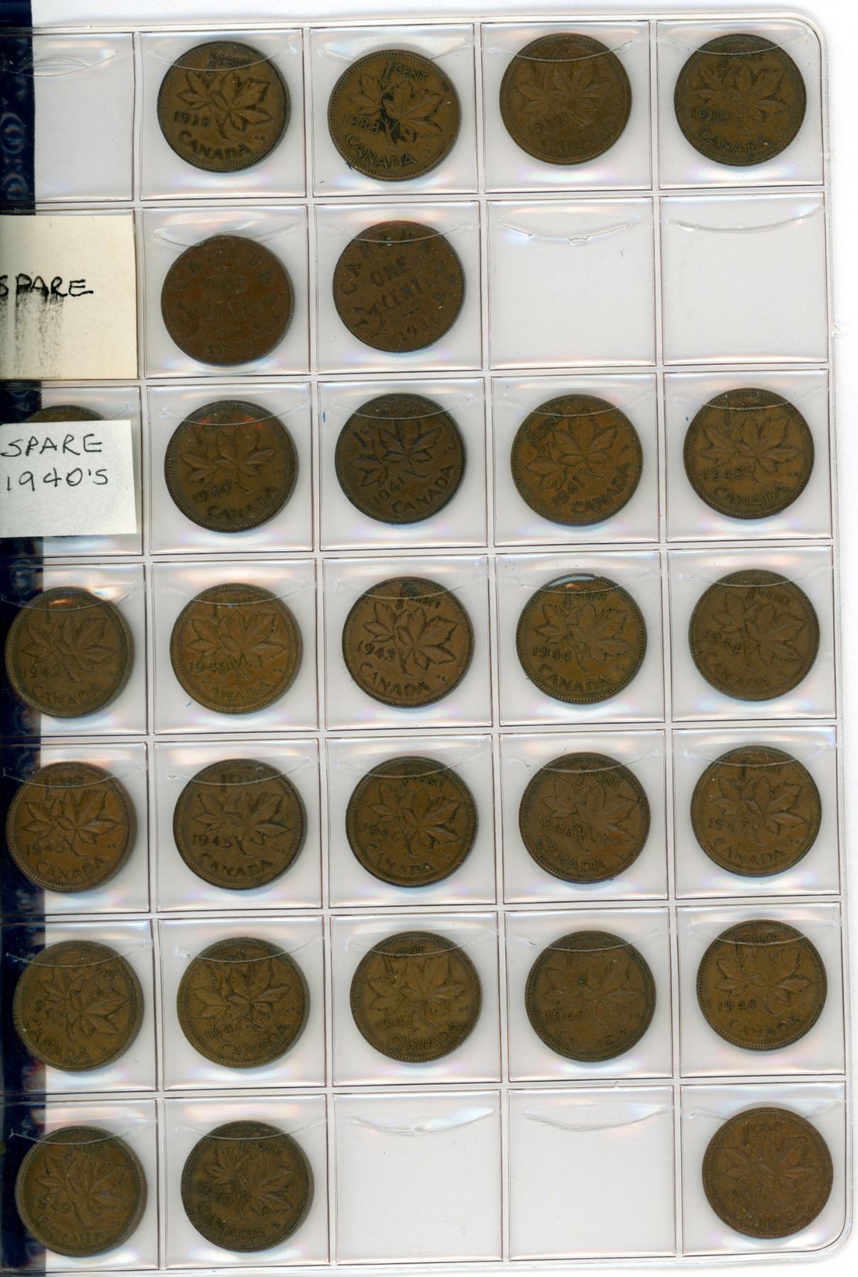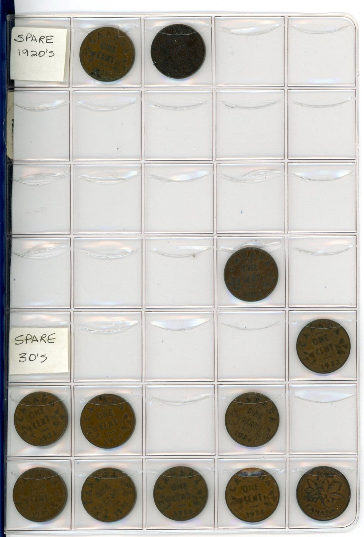 Canada Cents, Uni-Safe Folder, 69 coins, 1920s - 1960s