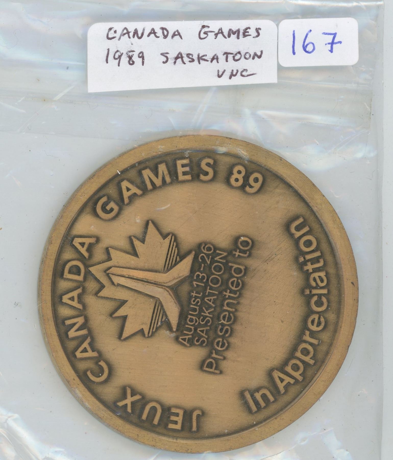Canada Games 1989 Saskatoon, Saskatchewan. Large brass sports medal measures 60mm and weighs 80 grams. Unc.