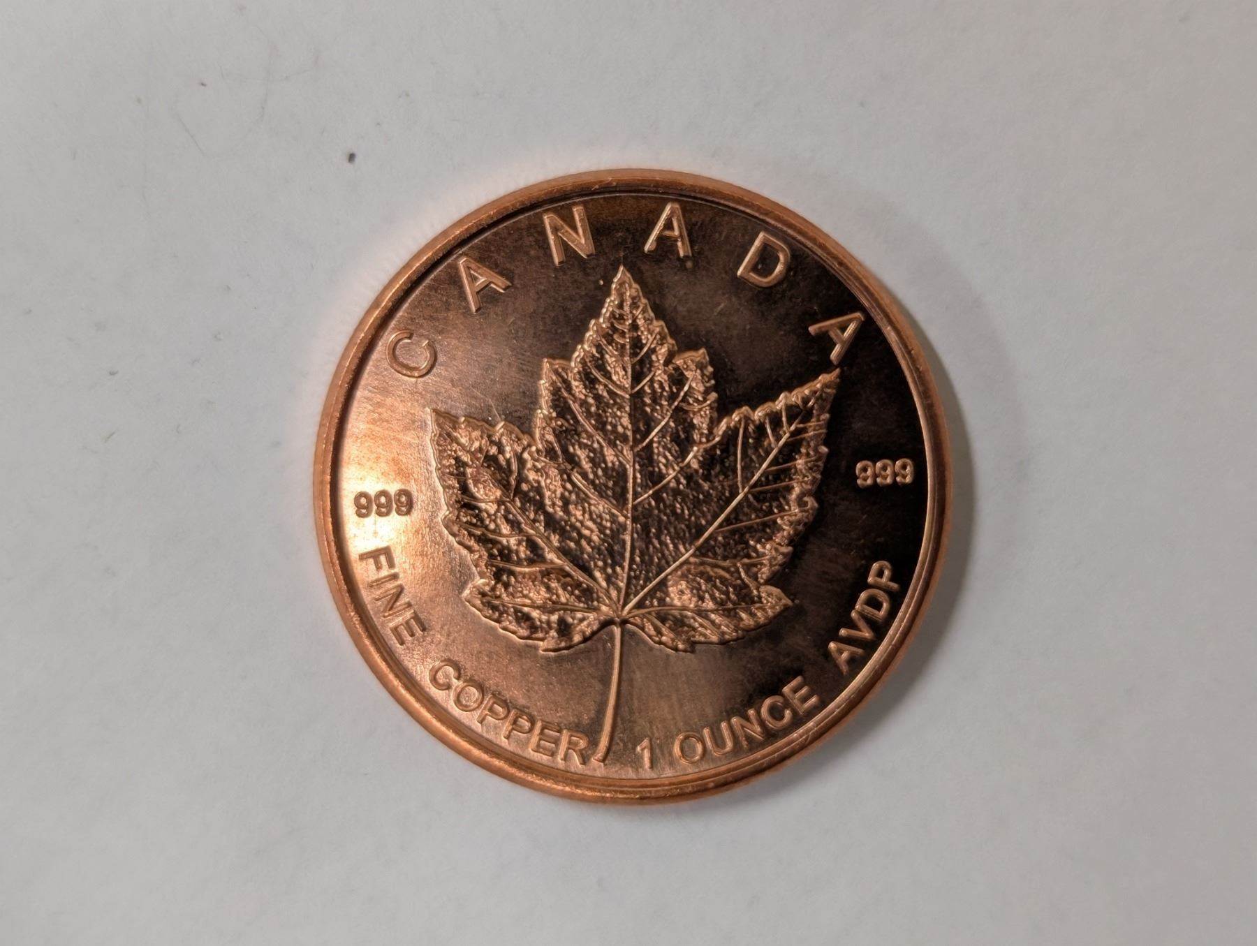 Canada Maple Leaf Copper .999 Fine USA One A.Y.D.P. Ounce Coin