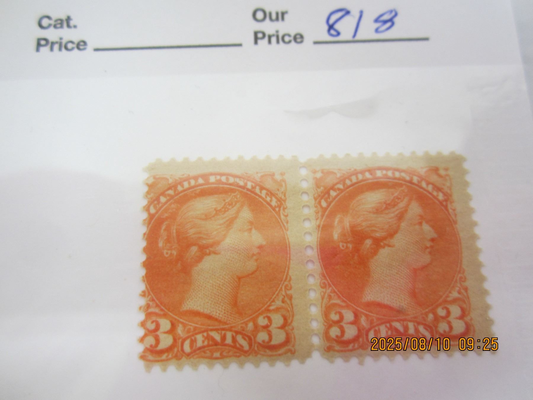 Canada Pair Small Queen Victoria 3 Cent OG, NH, Never Used