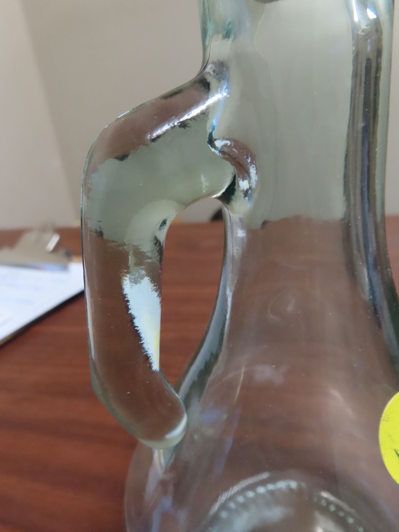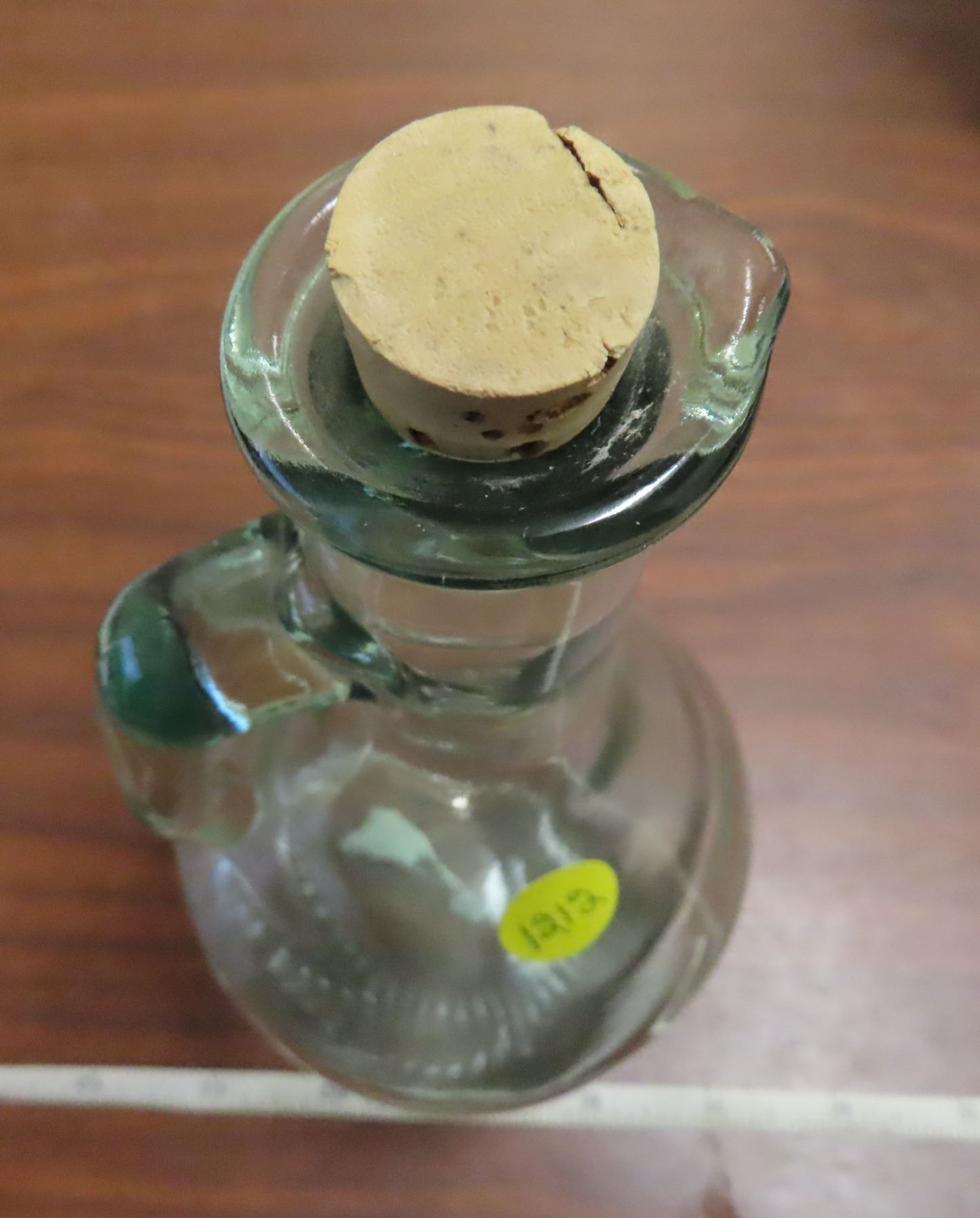 Canada glass cruet win carafe cork screw lid top opened handled canada glass (7.5")