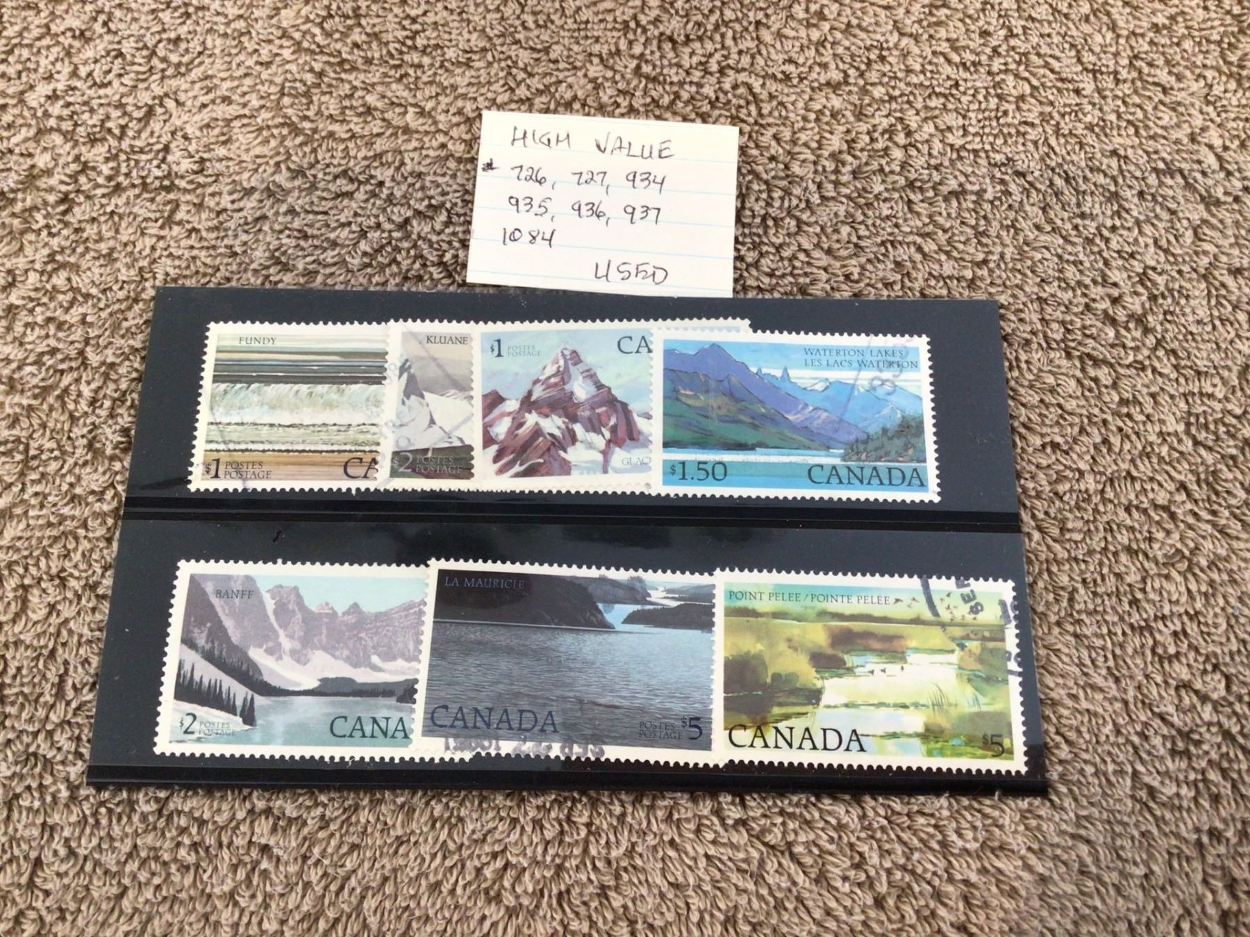 Canada stamps, National Parks set, high value. Scott #726, 727, 935-937, 1084. Used.