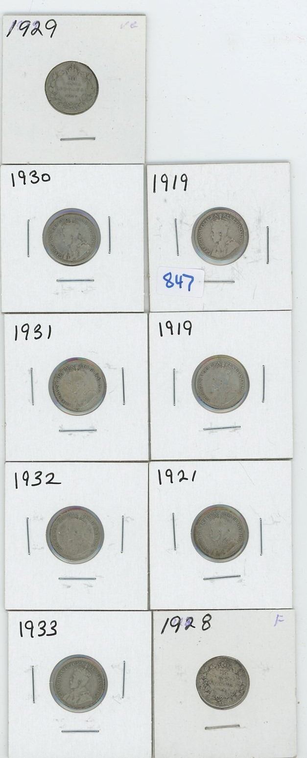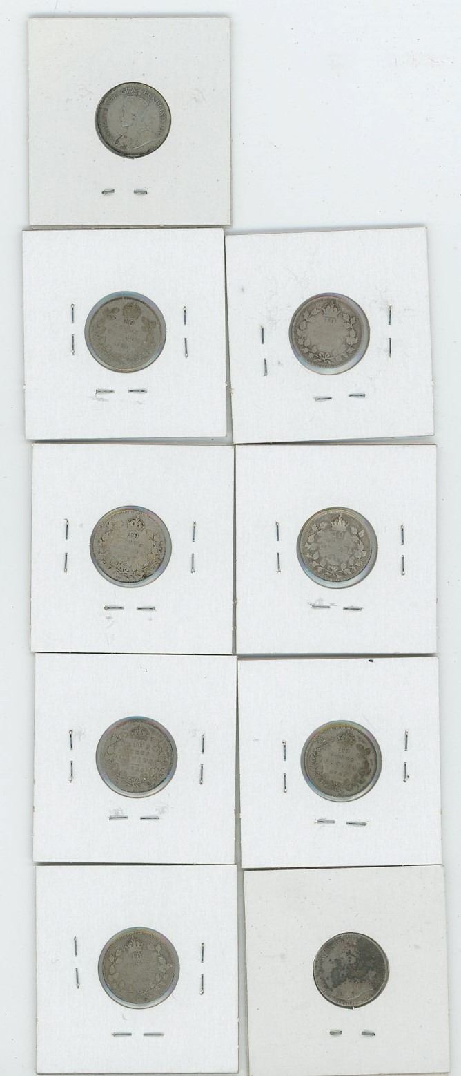 Canadian 10c 1919 x2, 1921, 1928, 1929, 1930, 1931, 1932, 1933