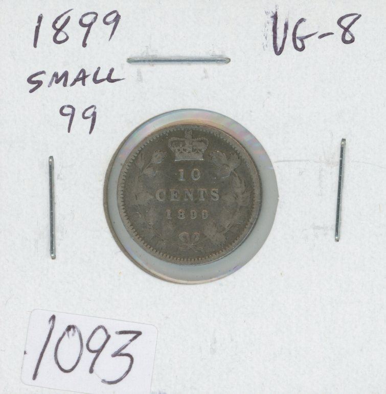Canadian 1899 Small 99 Victorian Silver 10 Cents. VG-8.