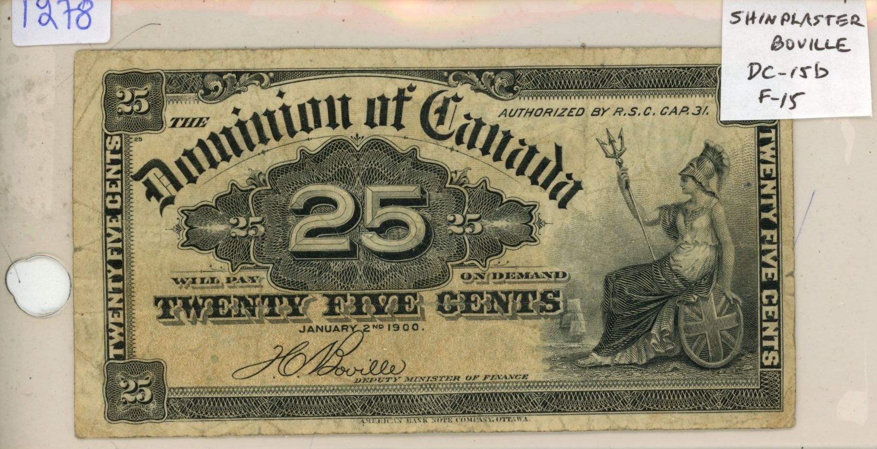 Canadian 1900 25 Cents Shinplaster. Boville signature. DC-15b. F-15.