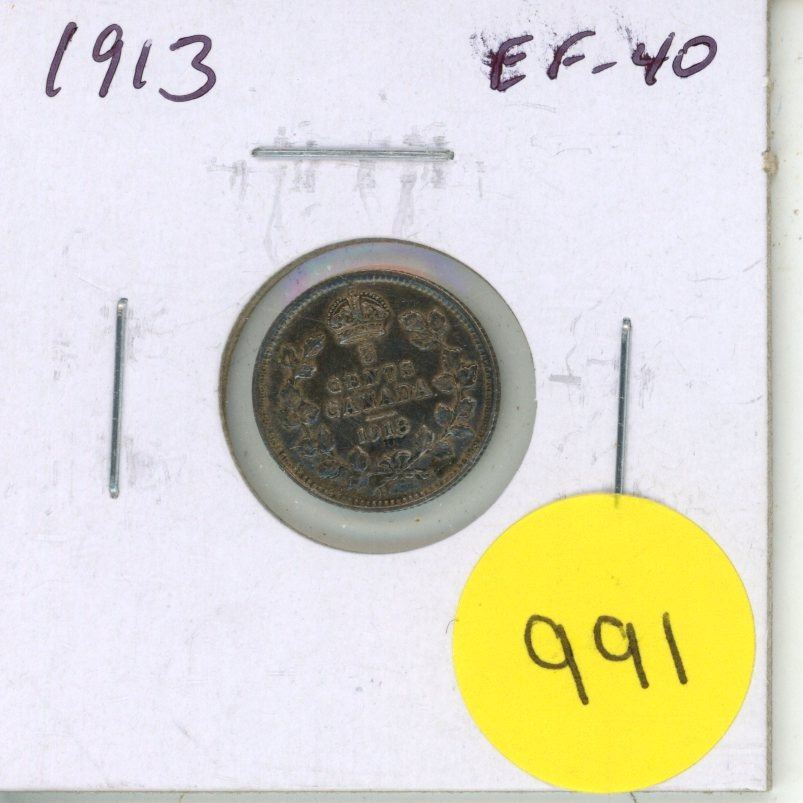 Canadian 1913 Silver 5 Cents. EF-40.