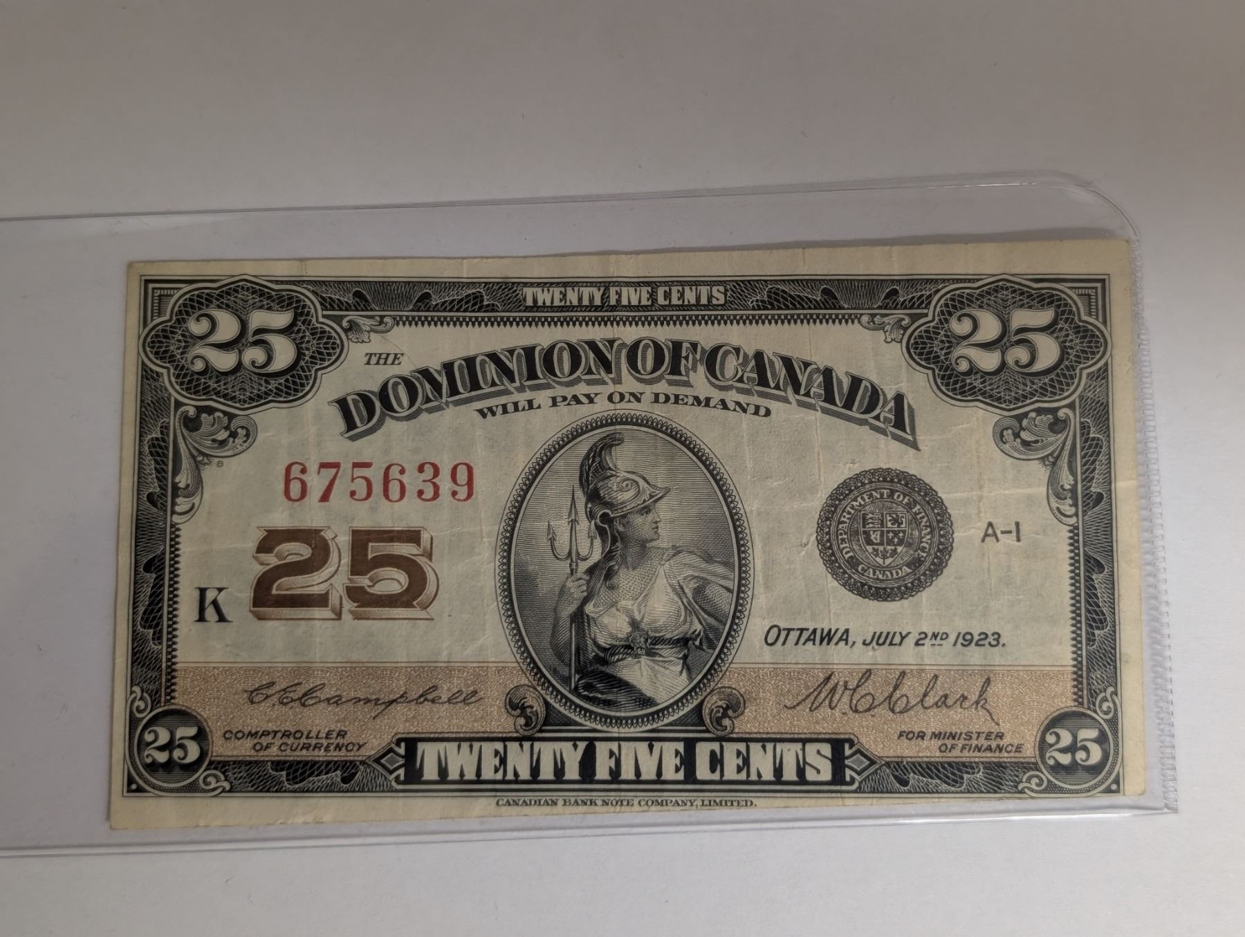 Canadian 1923 Dominion Of Canada 25 Cents Shinplaster 675639