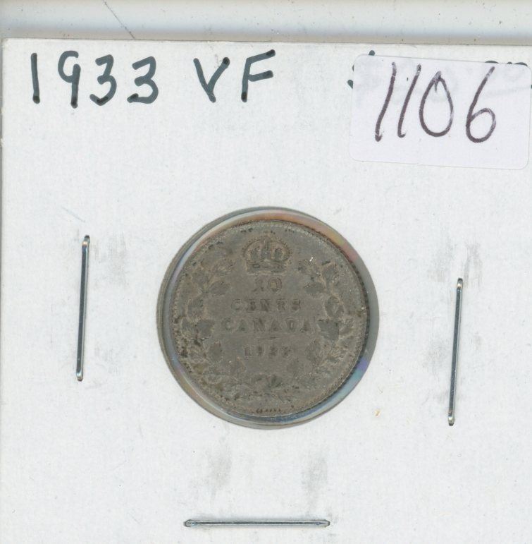Canadian 1933 Silver 10 Cents. VF-20. Nice.