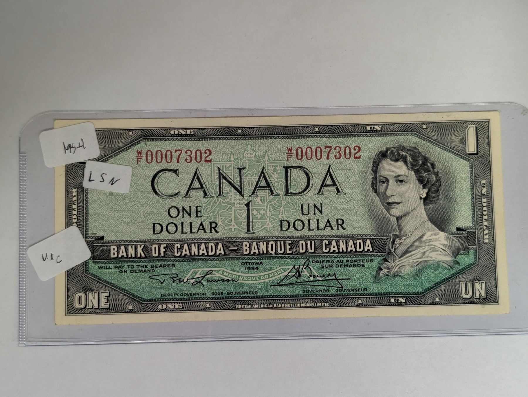 Canadian 1954 1 Dollar Bill MS-4 LSN U/C 0007302