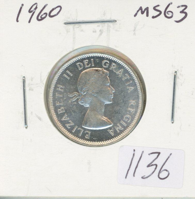 Canadian 1960 Silver 25 Cents. MS-63. Bright White. Nice.