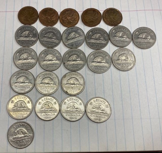 Canadian 1981, 1983, 1984 One Cent Pennies & 1983, 1984, 1986, 1987, 1988, 1989 Five Cent Nickels Co