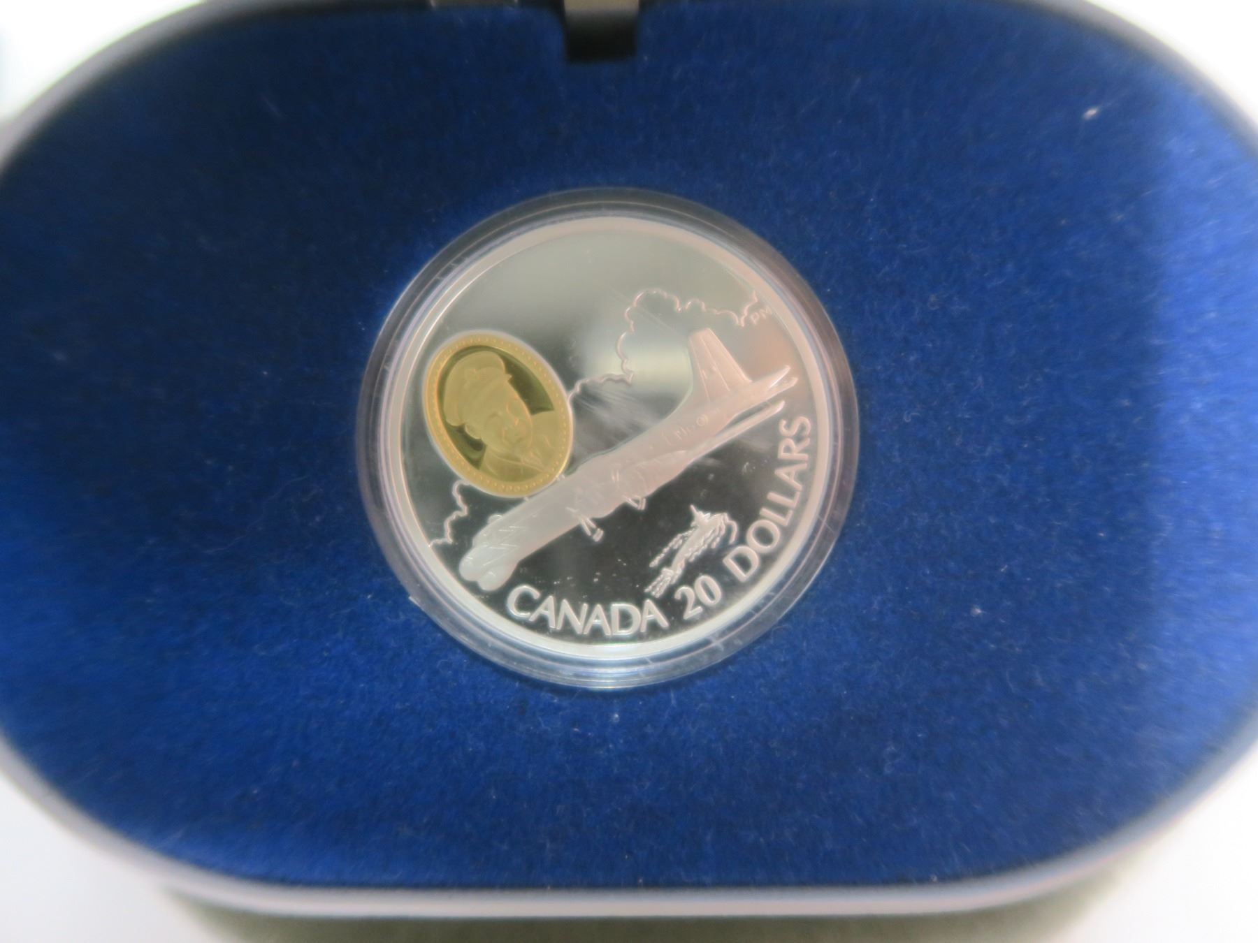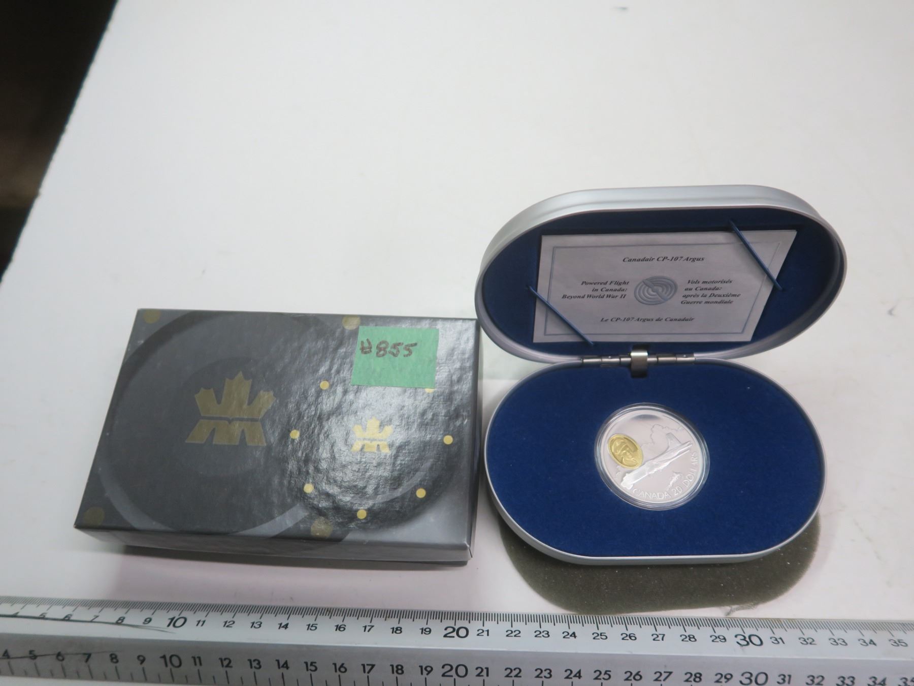 Canadian (1998) Canadair CP-107 Argus $20 coin - .925 silver, 24 karat gold oval cameo