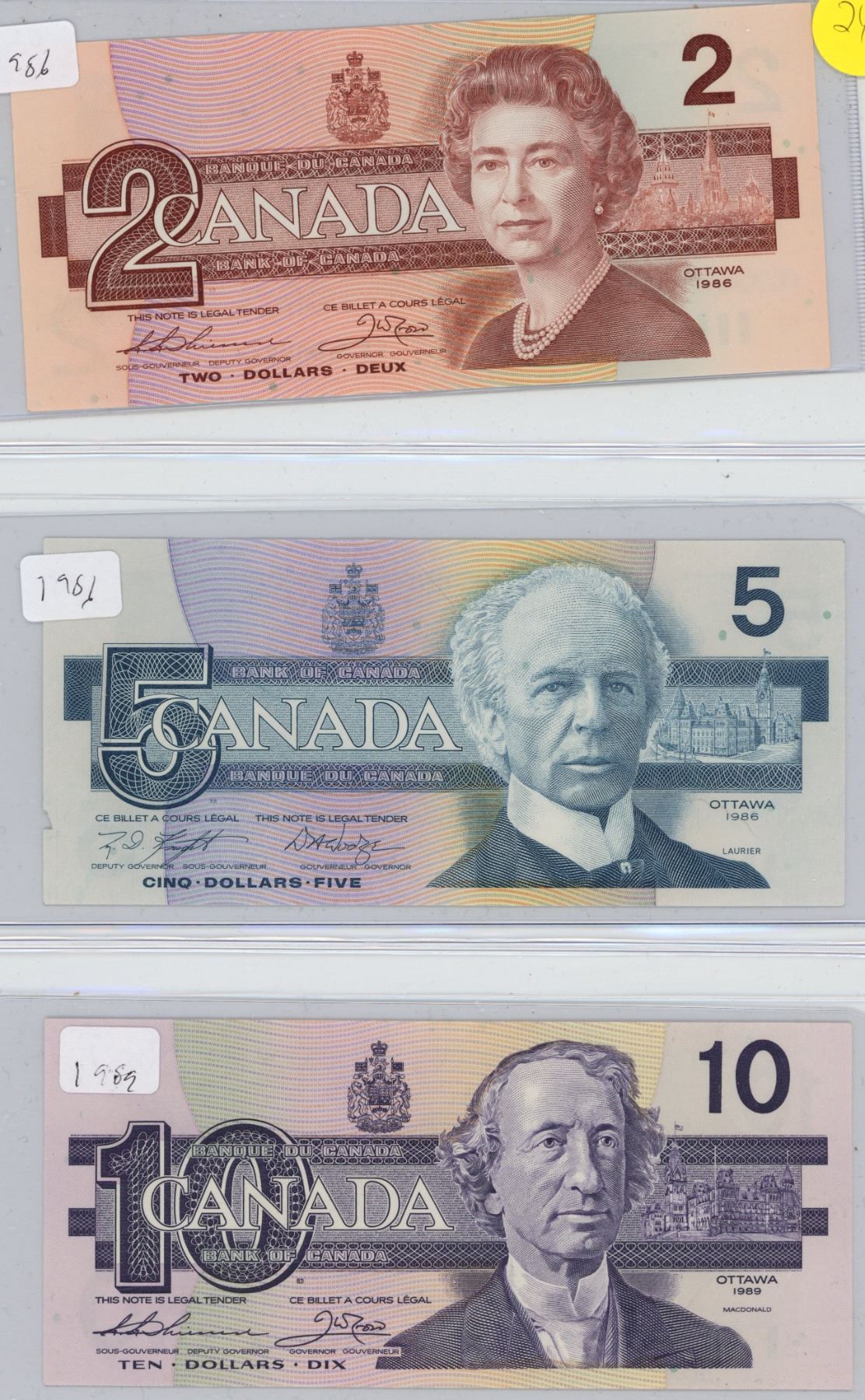 Canadian $2 ,$5, $10 (1986, 1989) Bill