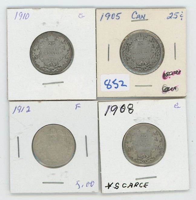 Canadian 25c 1905, 1908, 1910, 1912 Lot of 4