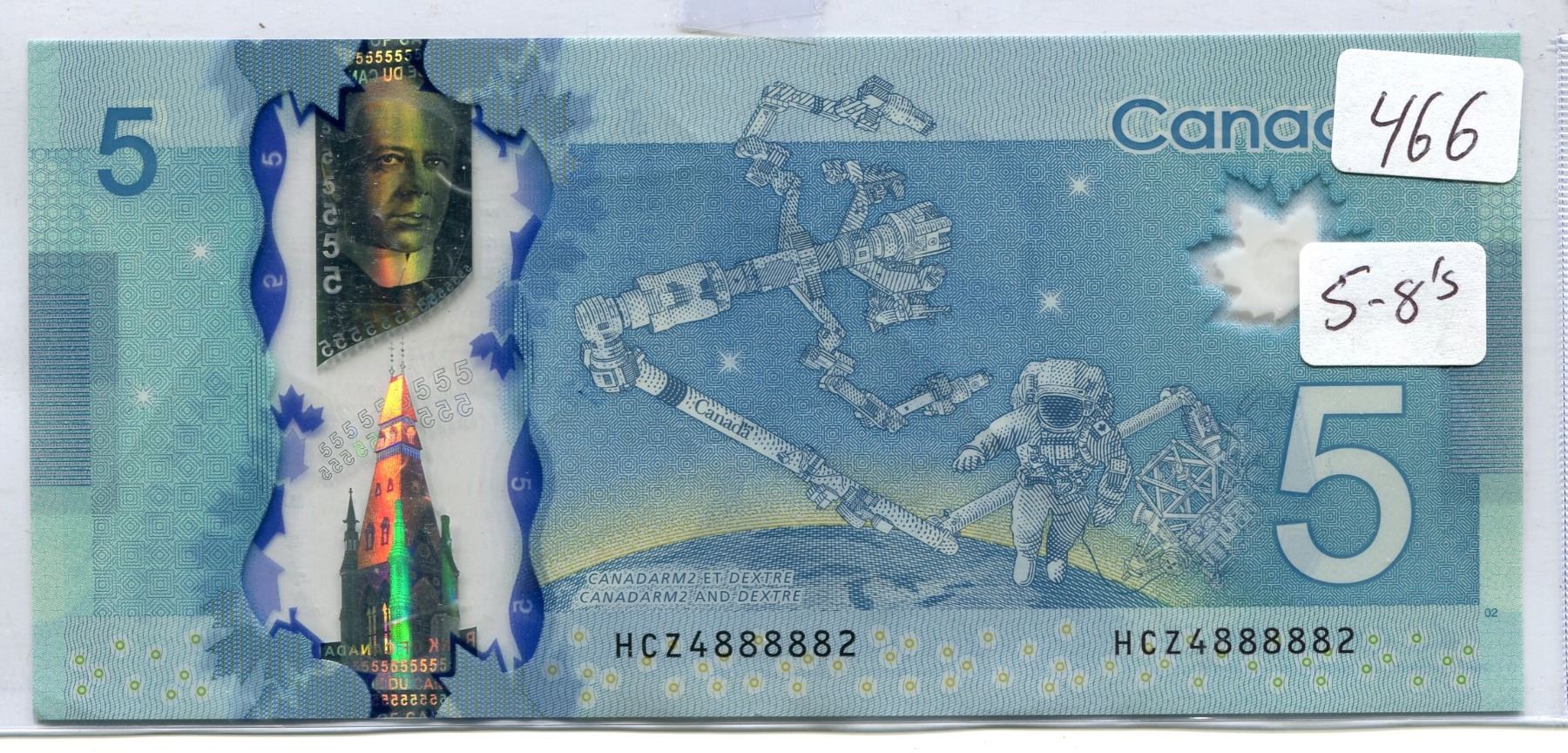 Canadian $5.00 bill #HCZ 4888882 five dollar bill / note