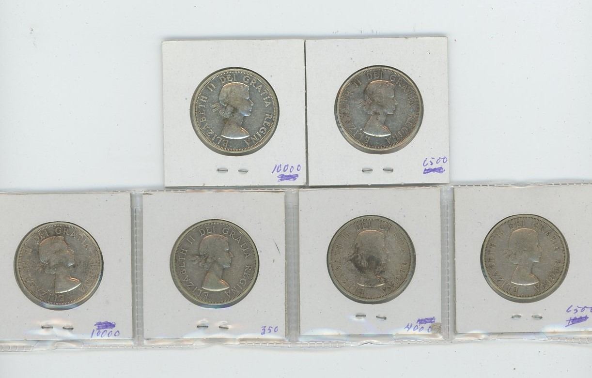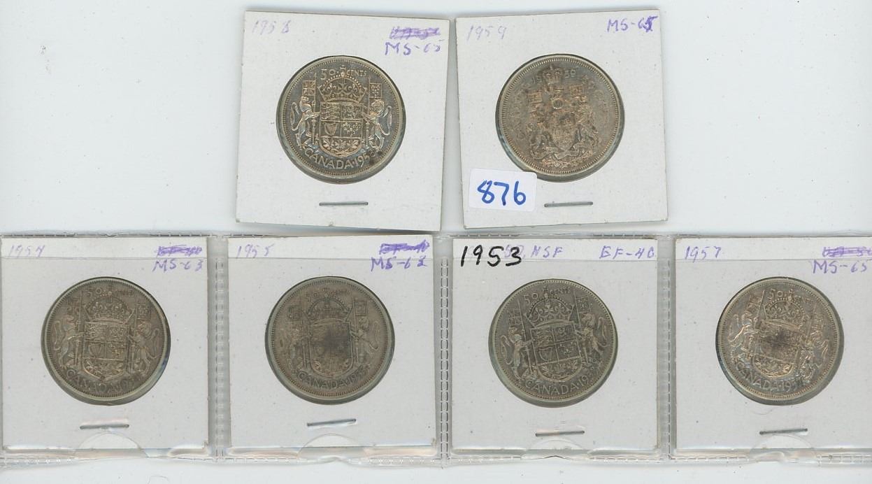 Canadian 50c 1953, 1954, 1955, 1957, 1958, 1959 Lot of 6