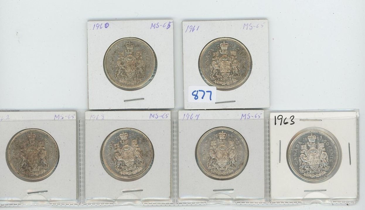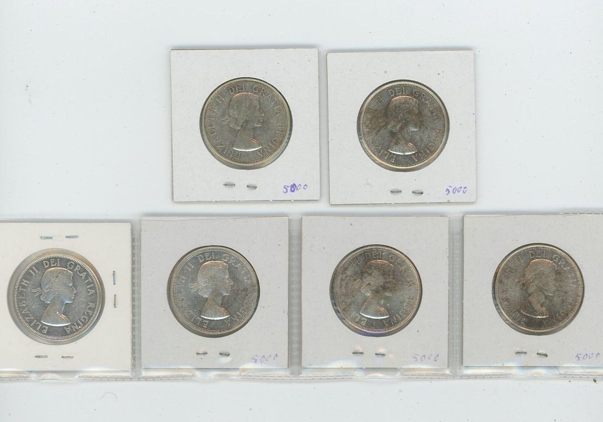 Canadian 50c 1960, 1961, 1962, 1963 x 2, 1964 Lot of 6