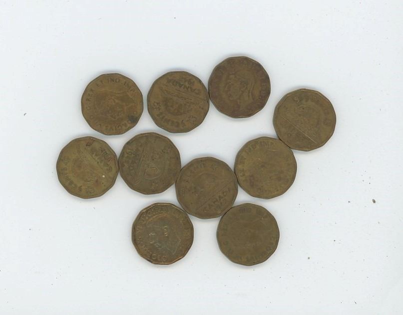Canadian 5c King George VI Tombac 1942 Lot of 10