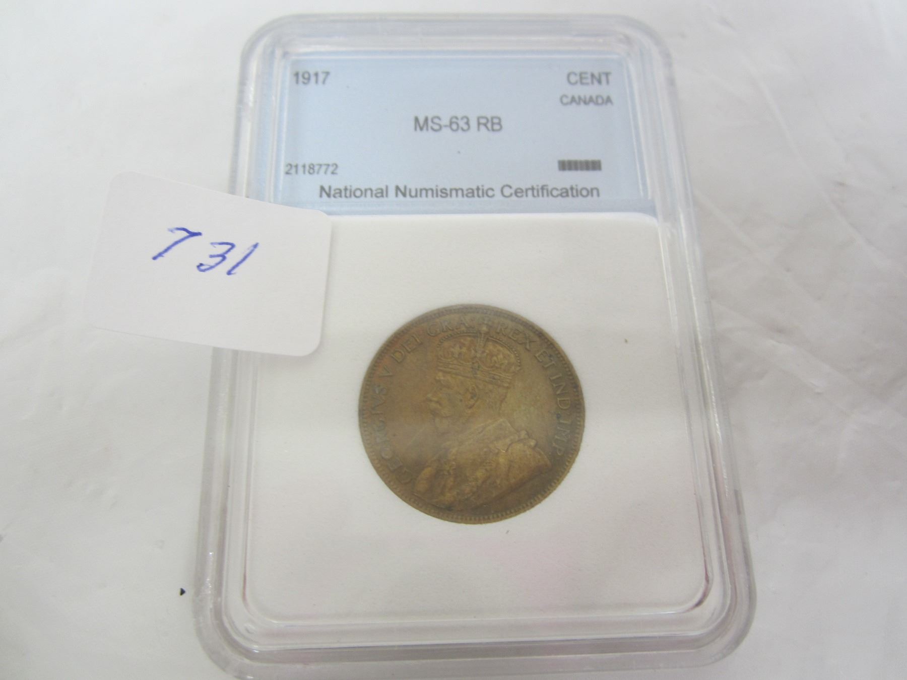 Canadian Large Penny 1917 Graded MS 63 RB