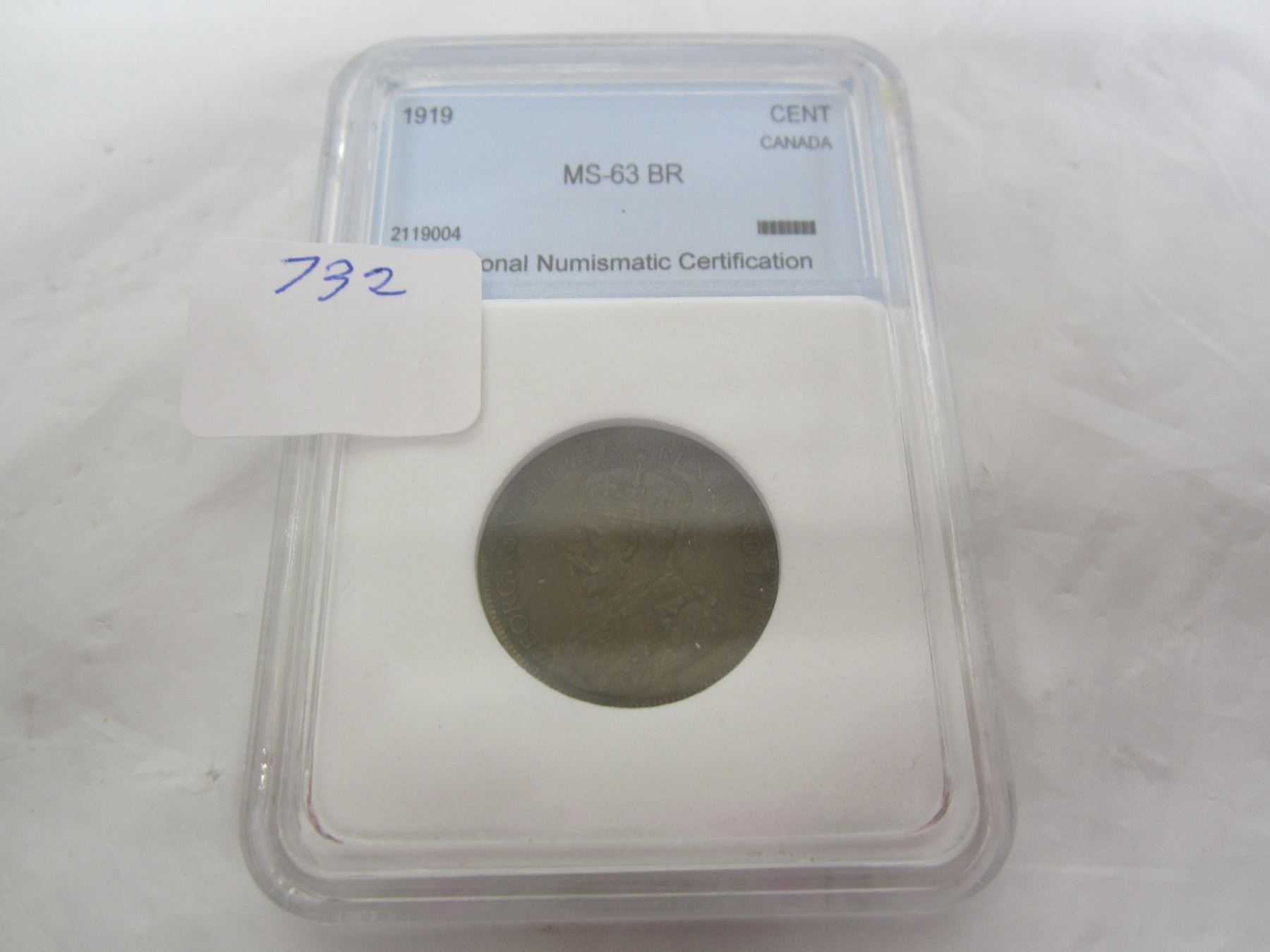 Canadian Large Penny 1919 Graded MS 63 BR