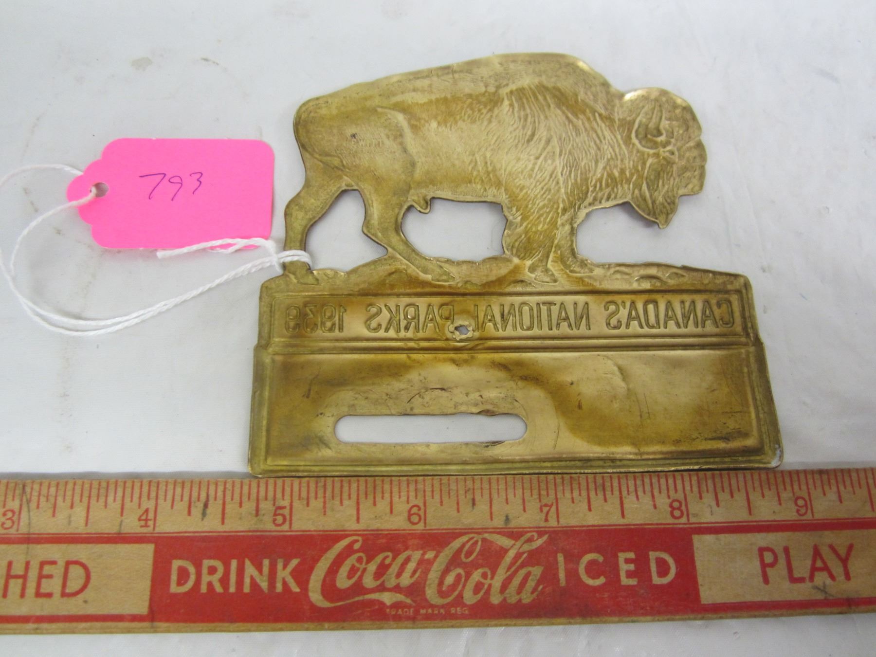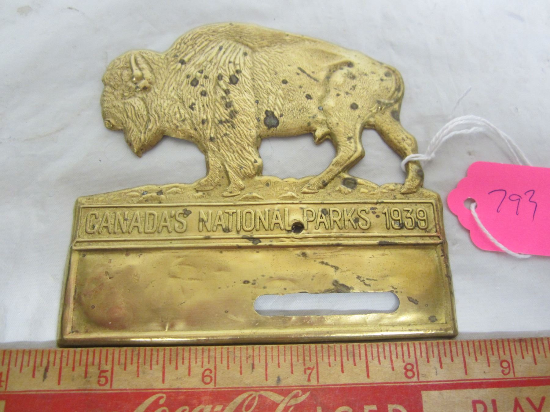 Canadian National Parks 1939 Brass Buffalo Park Car Badge