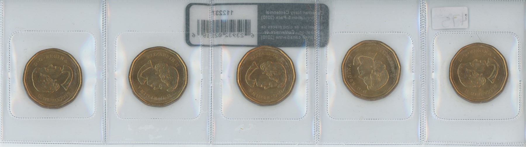 Canadian Navy Centennial $1 Circulation 5-Pack 2010,5-canadian dollars