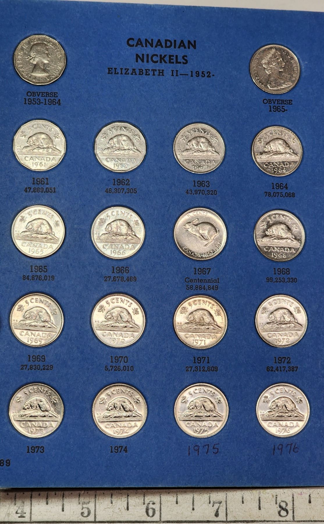 Canadian Nickel Collection. 1961 – 2016 Complete. Coins grade VF to BU. Housed in a blue Whitman folder.