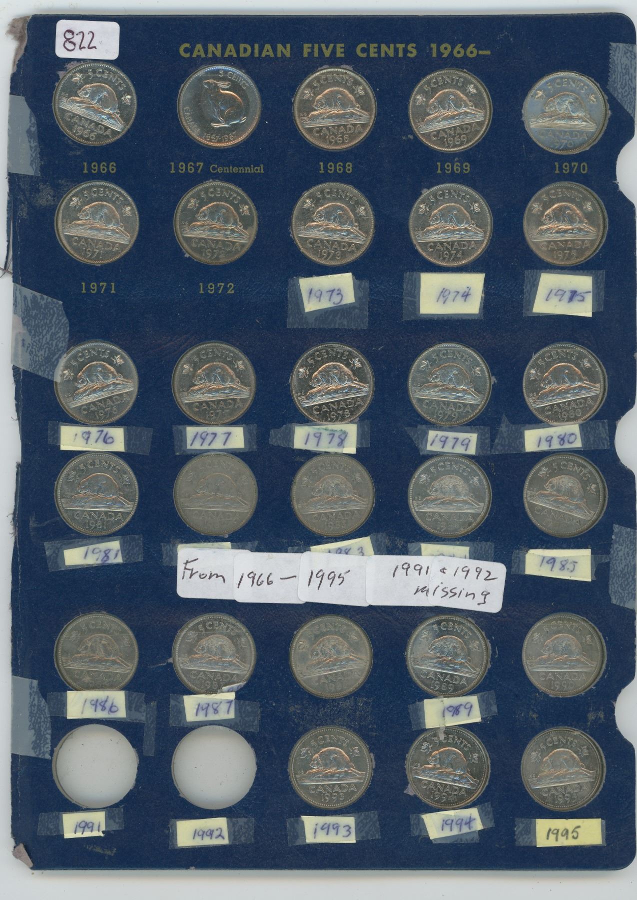 Canadian Nickels From 1966-1995 (1991 + 92) Missing