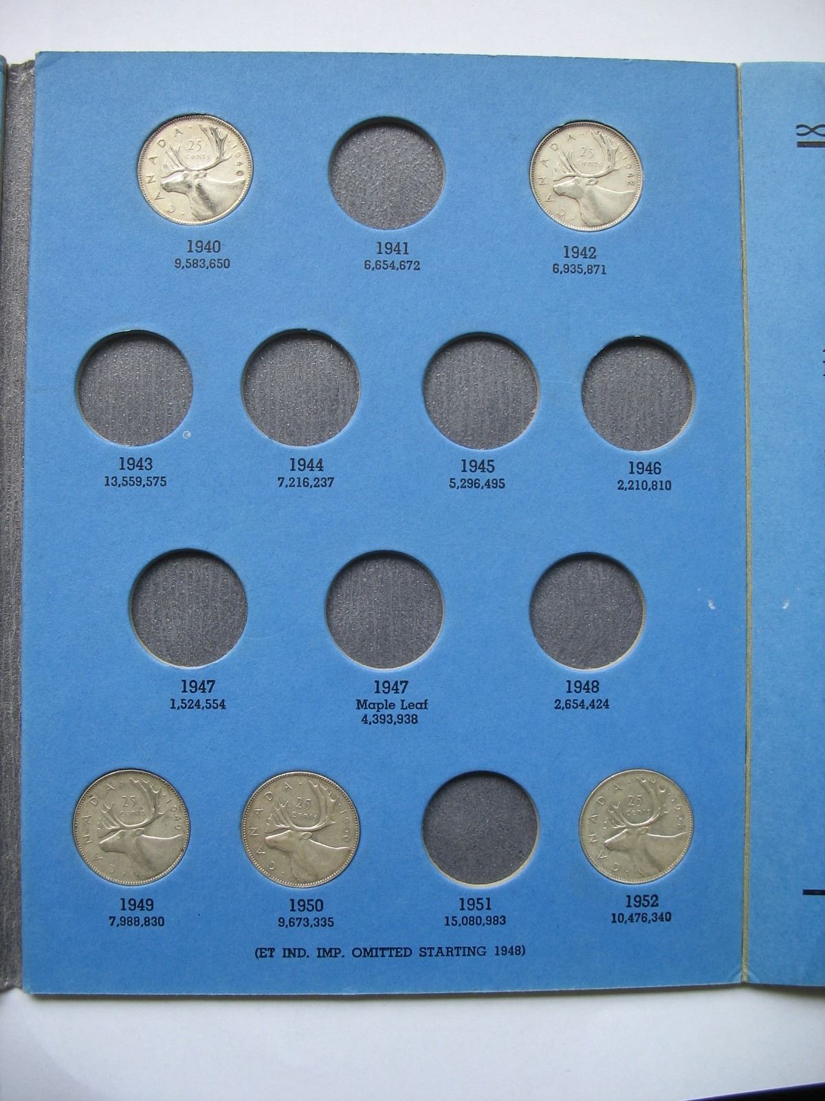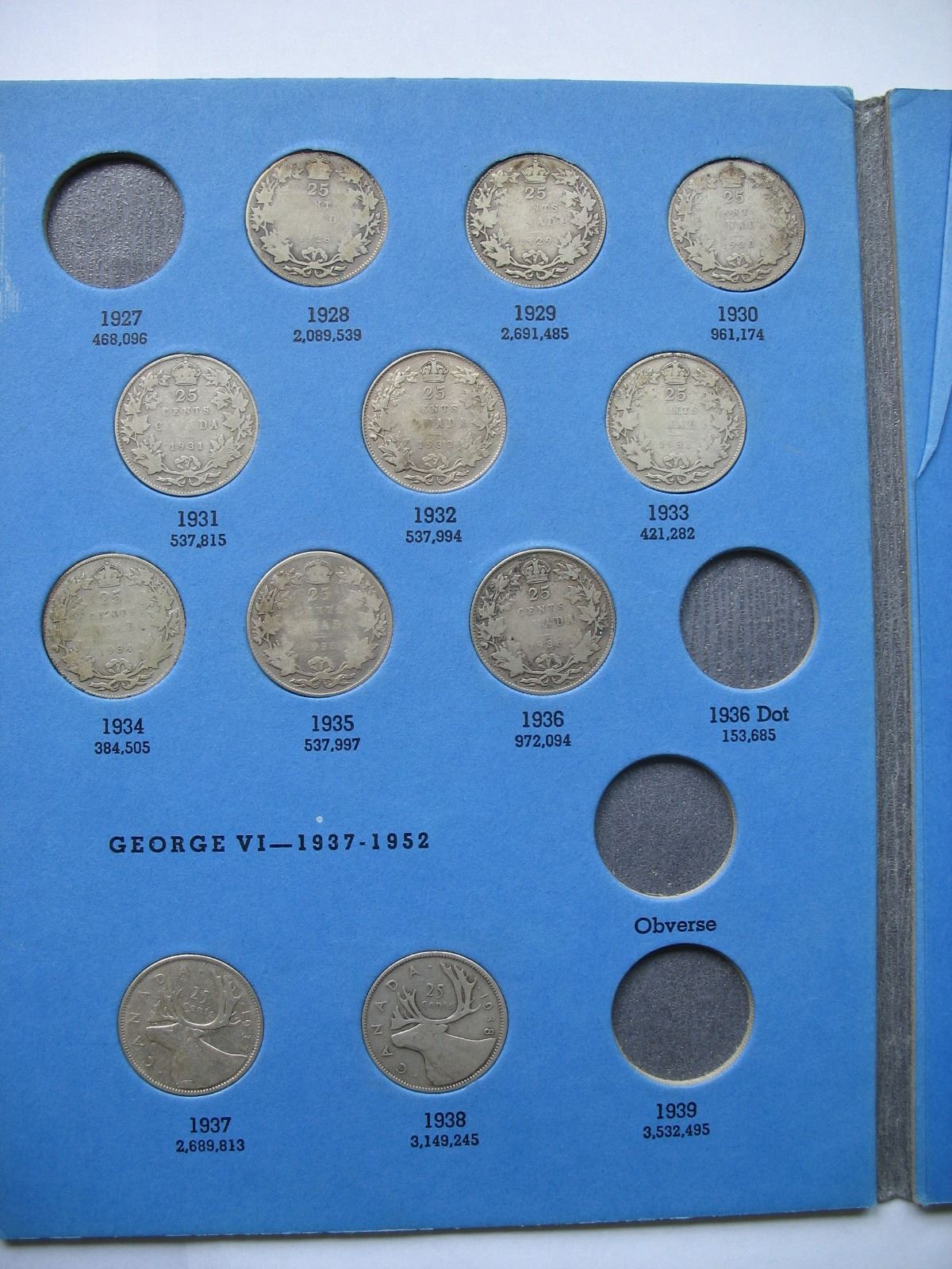 Canadian Quarter Album - 24 Silver coins (1912-1952) Various grades