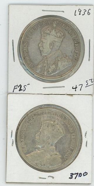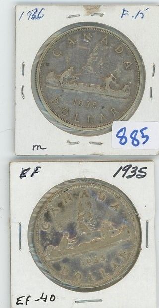 Canadian Silver Dollars 1935, 1936 Lot of 2