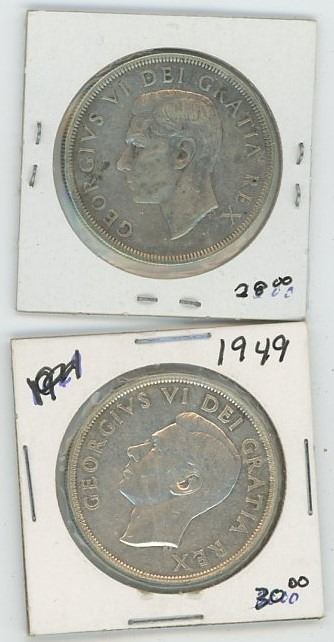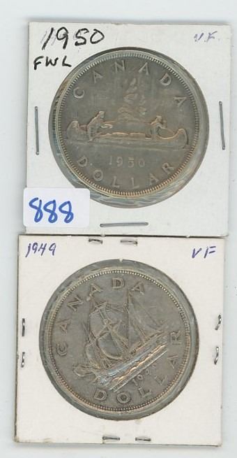 Canadian Silver Dollars 1949, 1950 Lot of 2