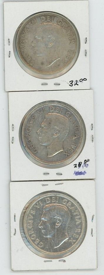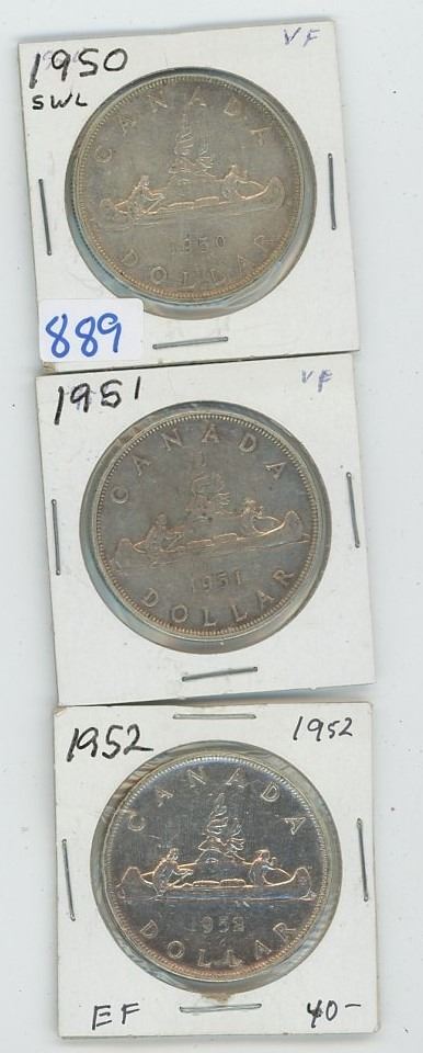 Canadian Silver Dollars 1950, 1951, 1952 Lot of 3