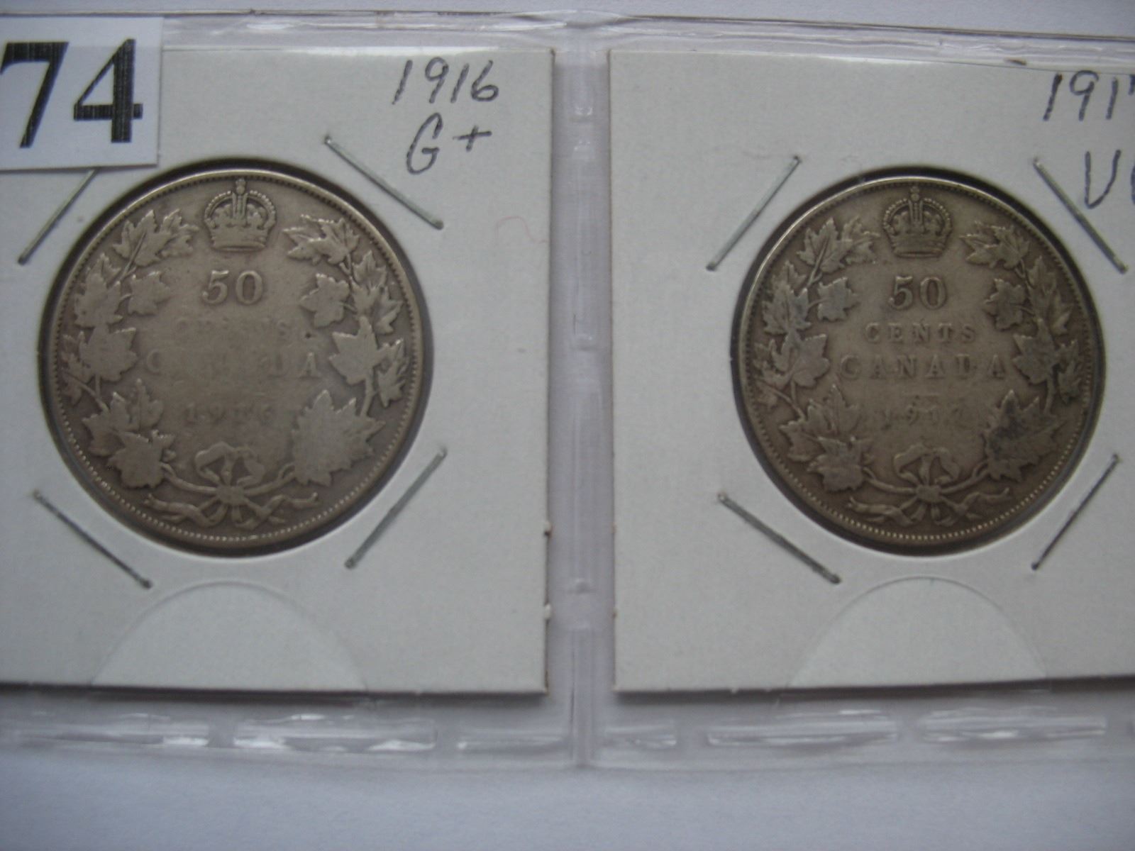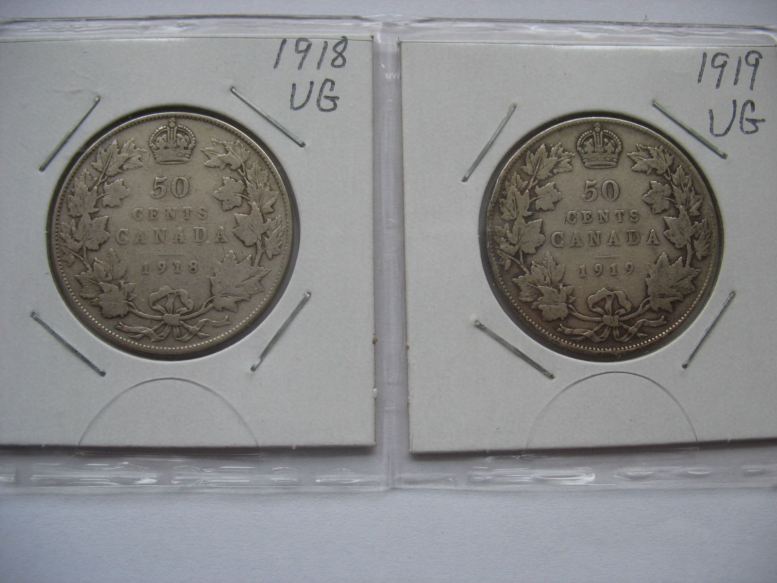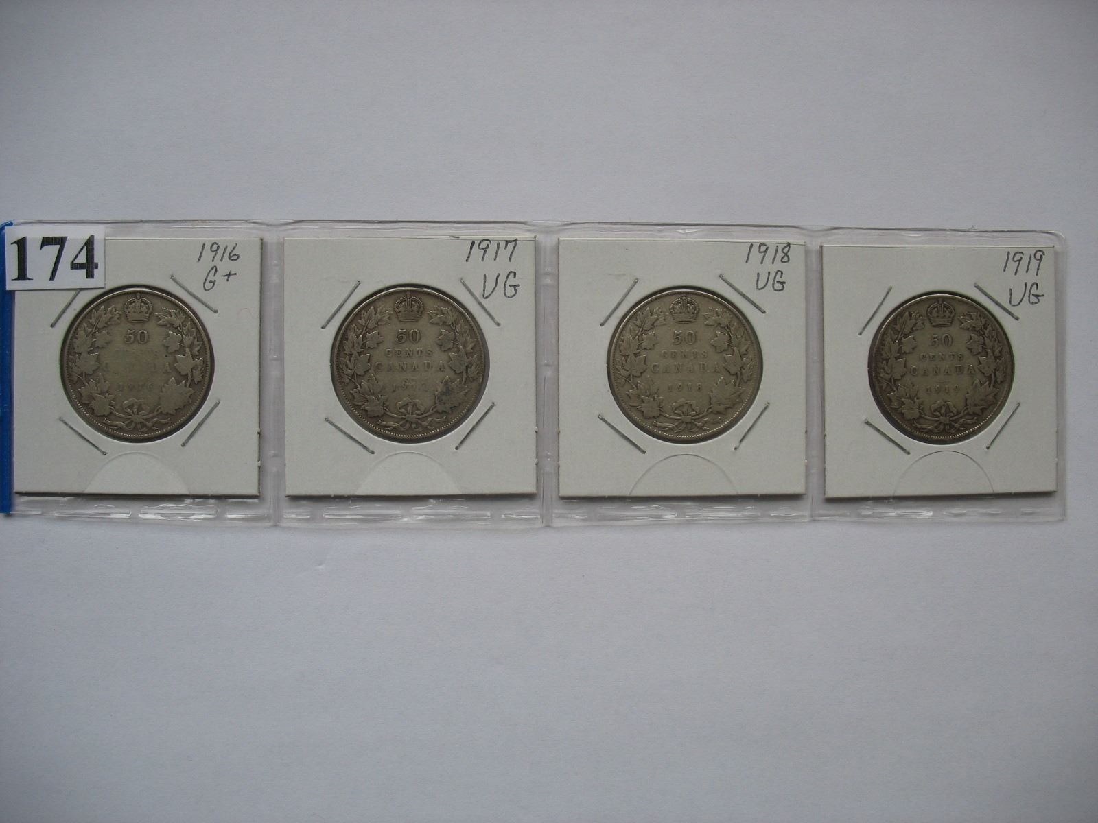 Canadian Silver Half Dollars - Set of 4 - 1916, 1917, 1918, 1919