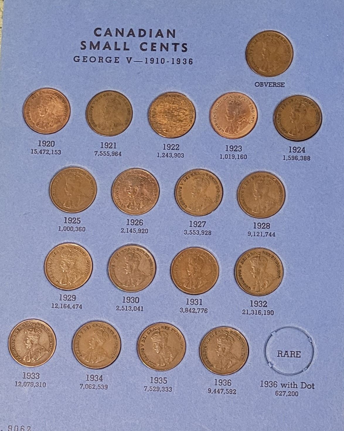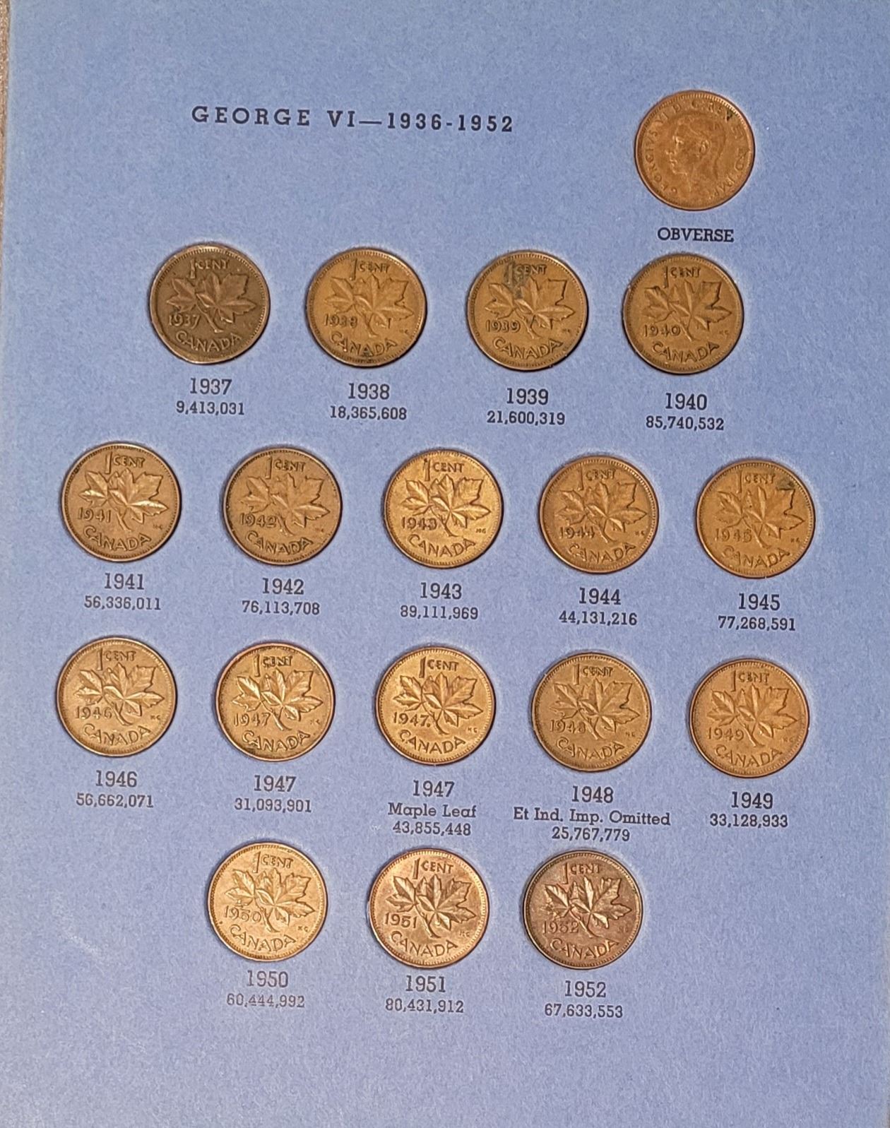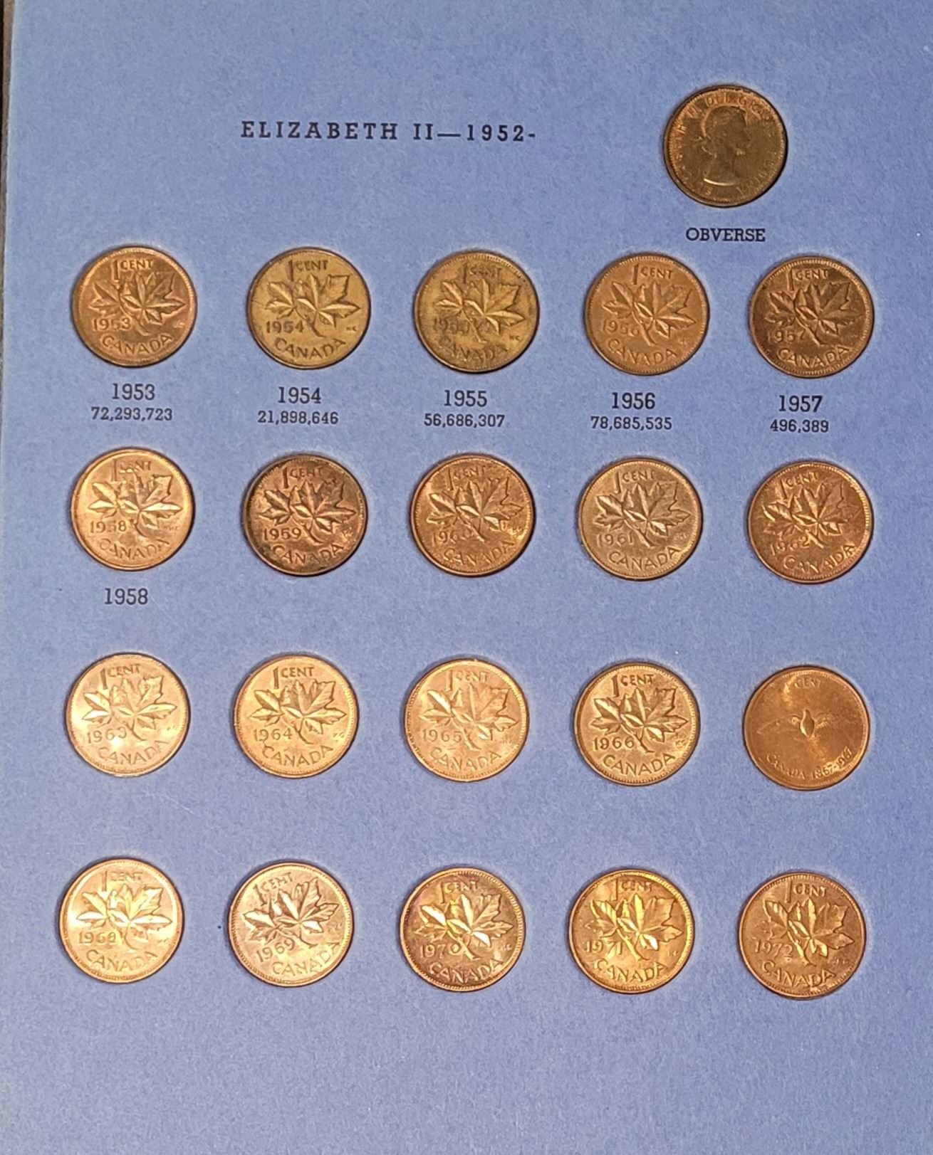 Canadian Small Cent Collection - 1920 to DATE in blue folding folder - see photos