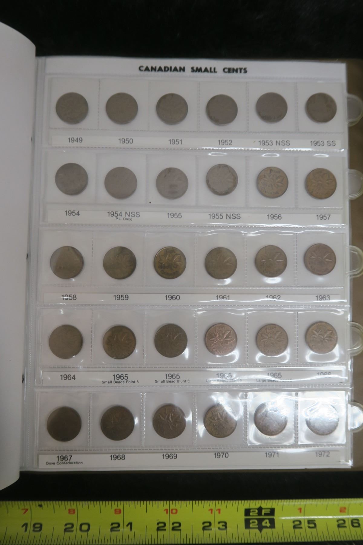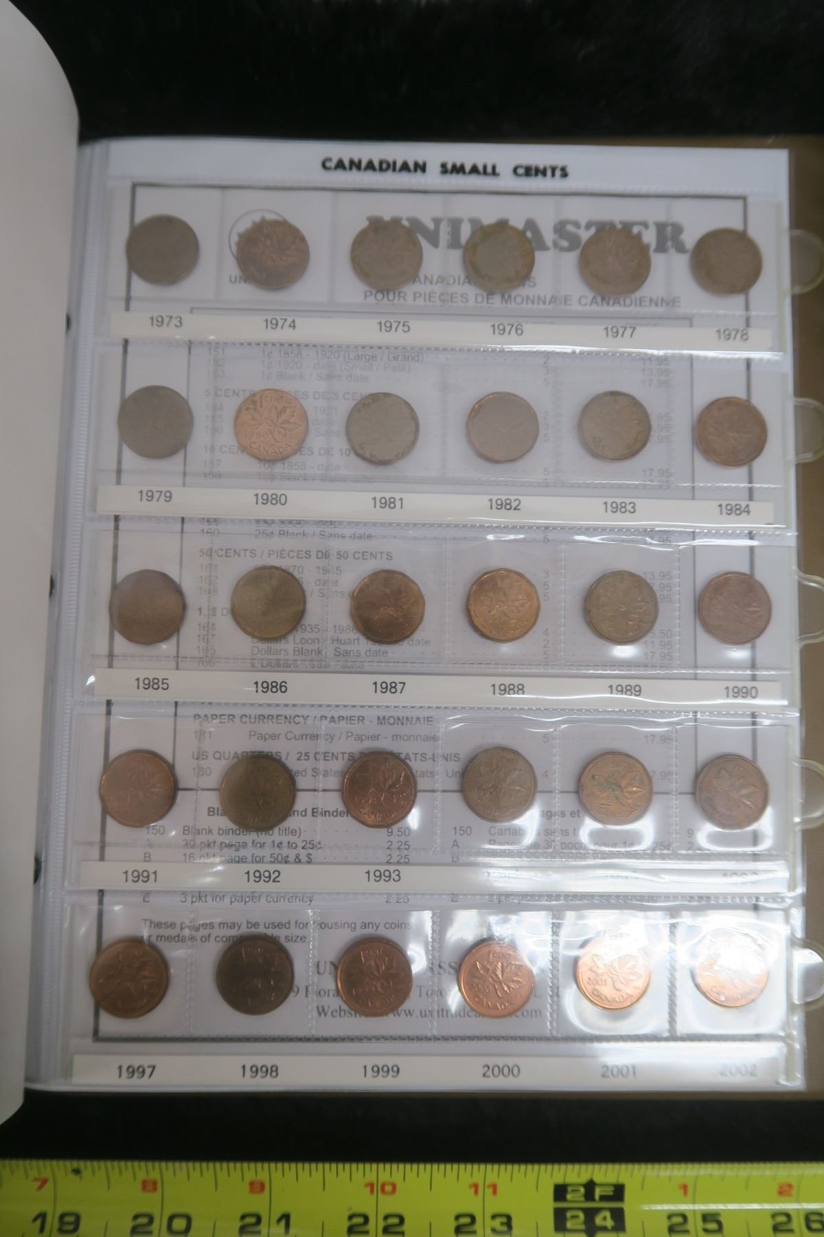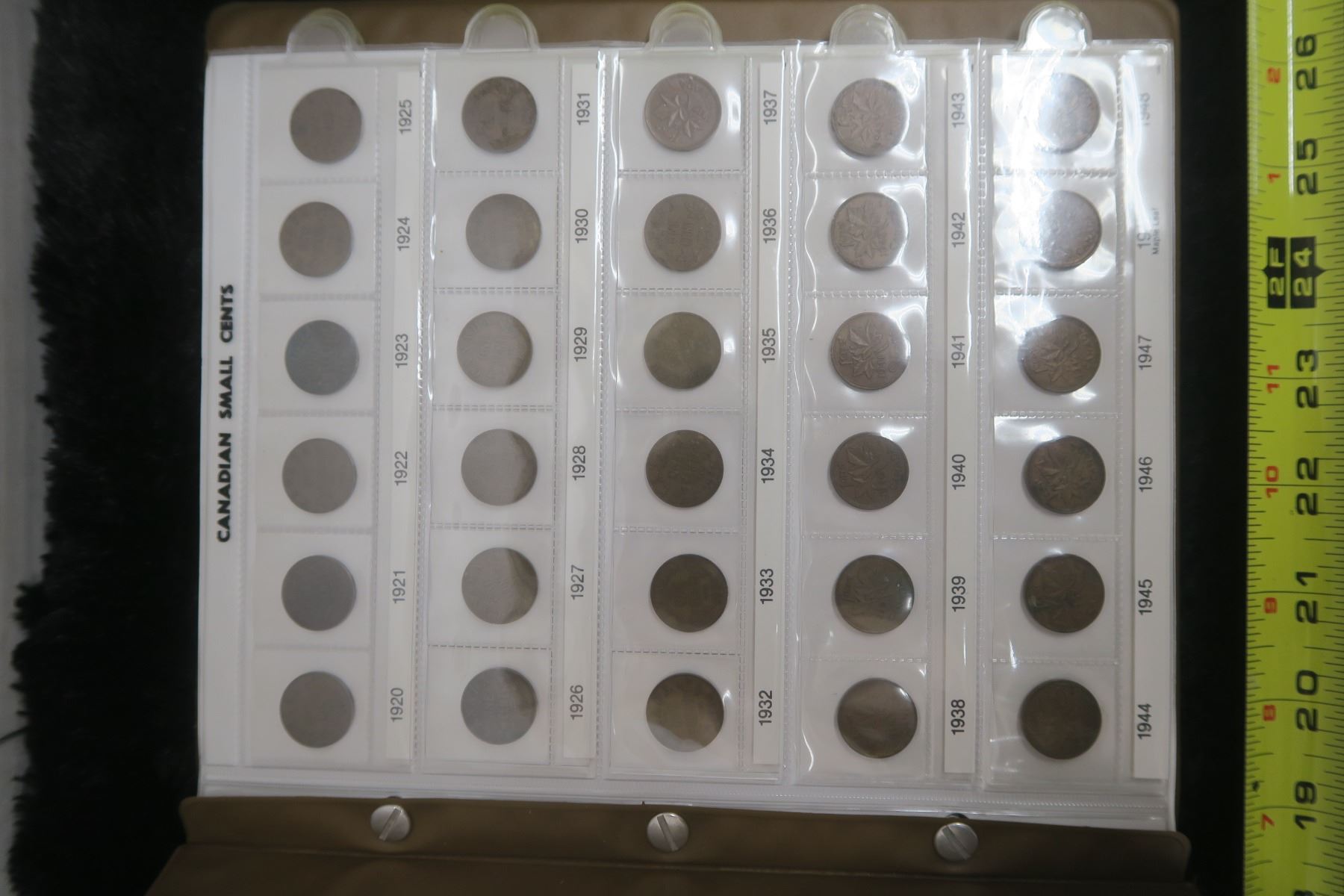 Canadian Small Cents Collection. 1920 – 2002. Complete, includes Key Dates from 1922 – 1926. Housed in a Unimaster Uni-Safe Album. Coins grade F-12 to BU Red. A nice lot.
