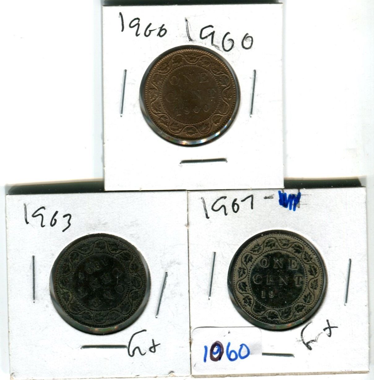 Canadian large cents 1900H, 1903, 1907 various grades