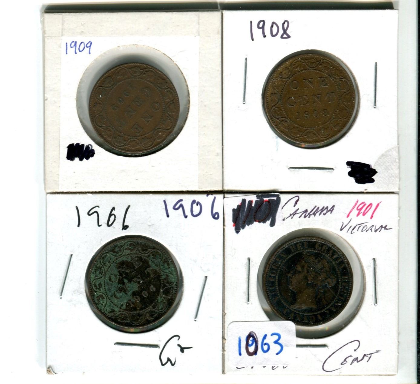 Canadian large cents 1901, 1906, 1908, 1909
