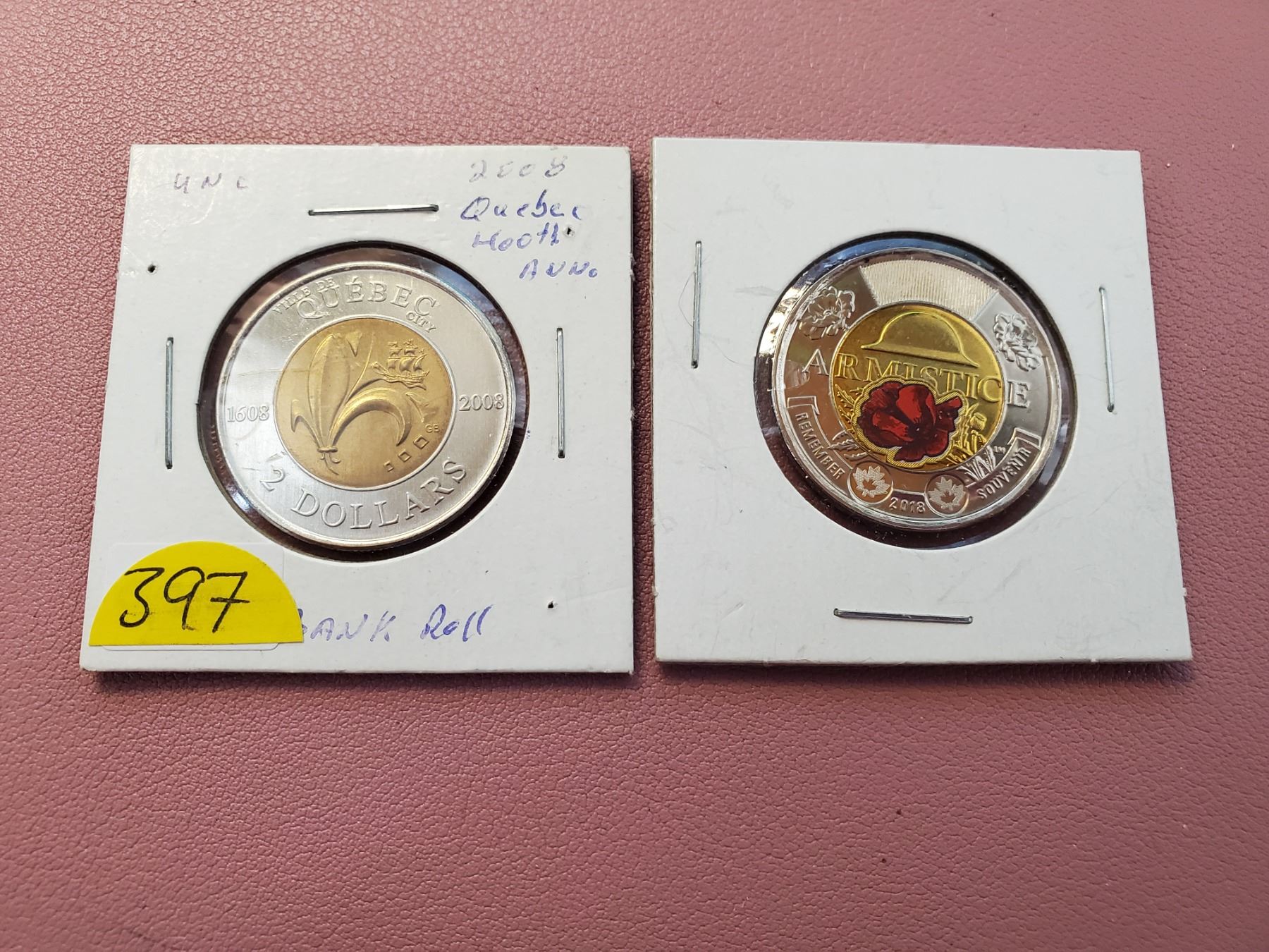 Canadian toonie 2008 Quebec, 2018 armistace unc lot of 2