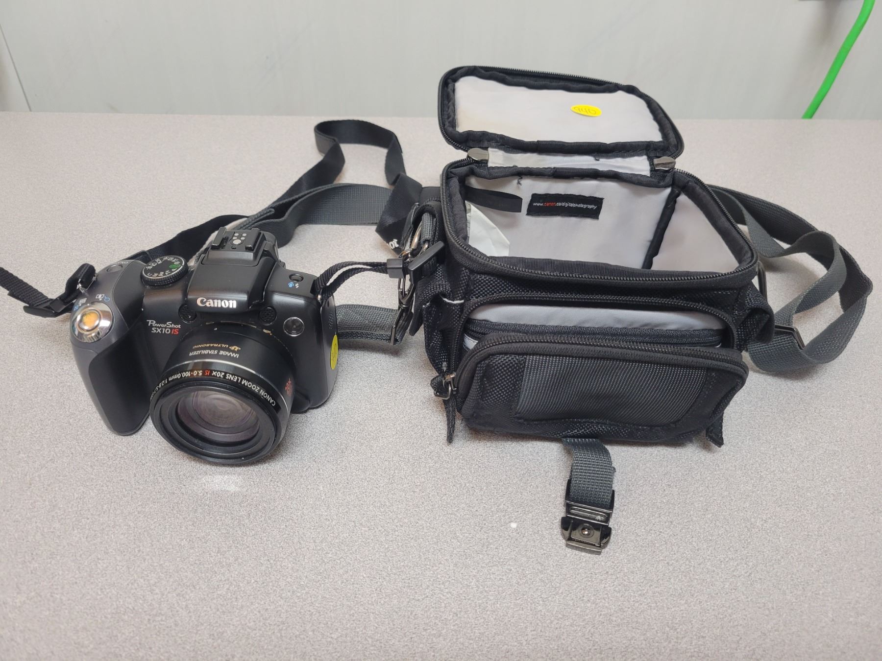 Canon Powershot SX10IS with carrying strap& case. Uses AA batteries, tested, working.