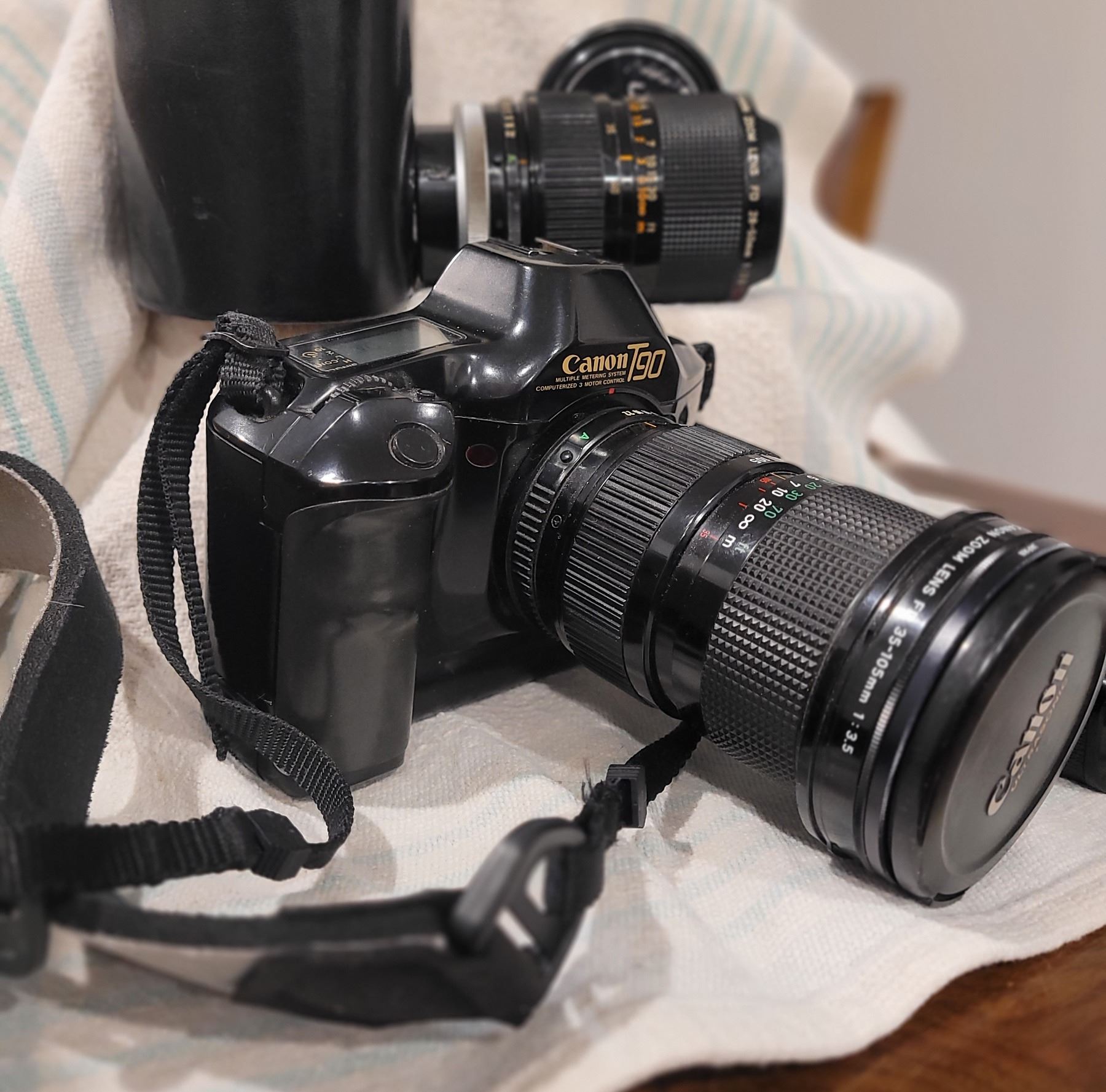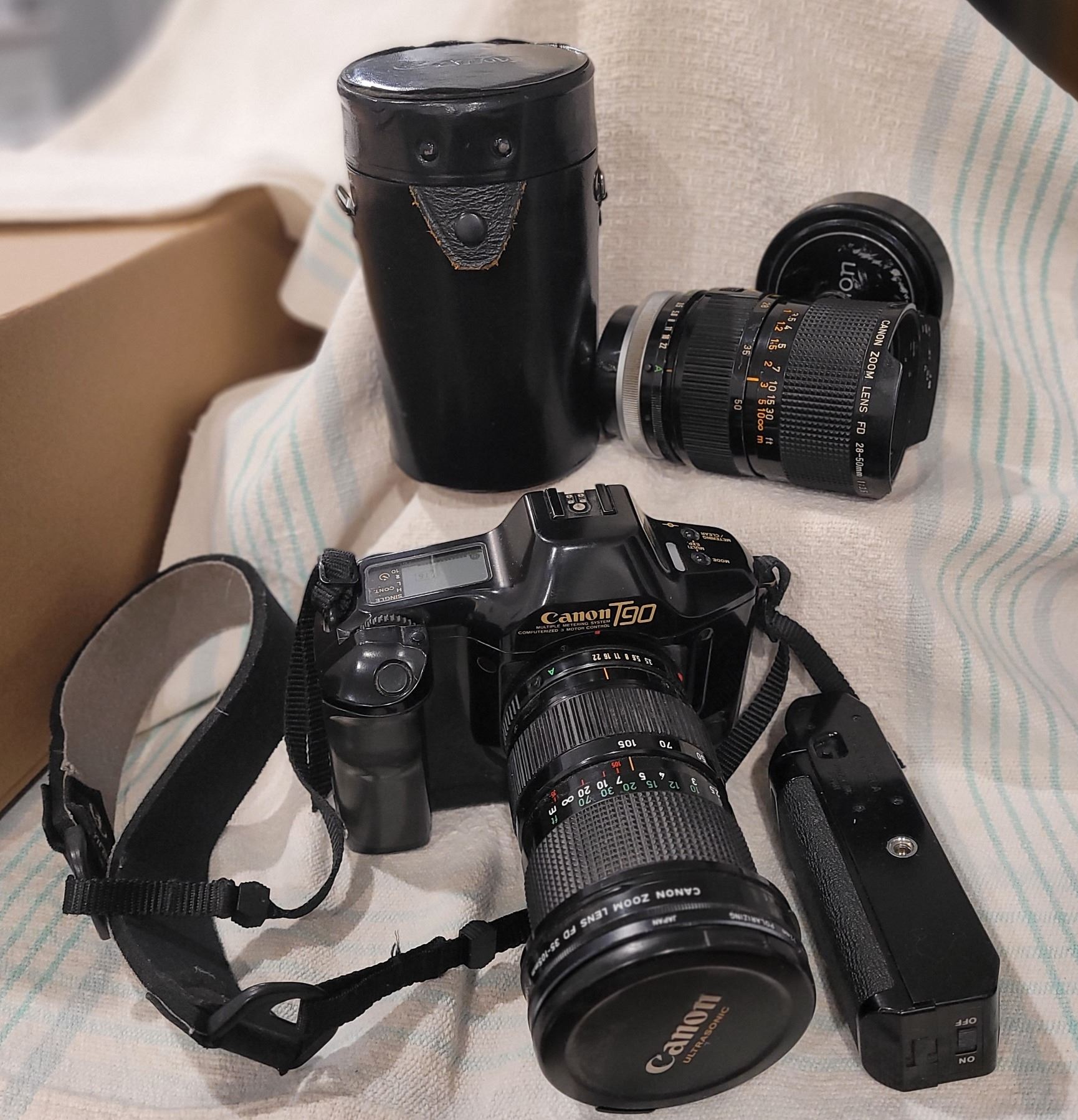 Canon T90 camera with 35-105mm lens & 28-50mm lens & power winder A